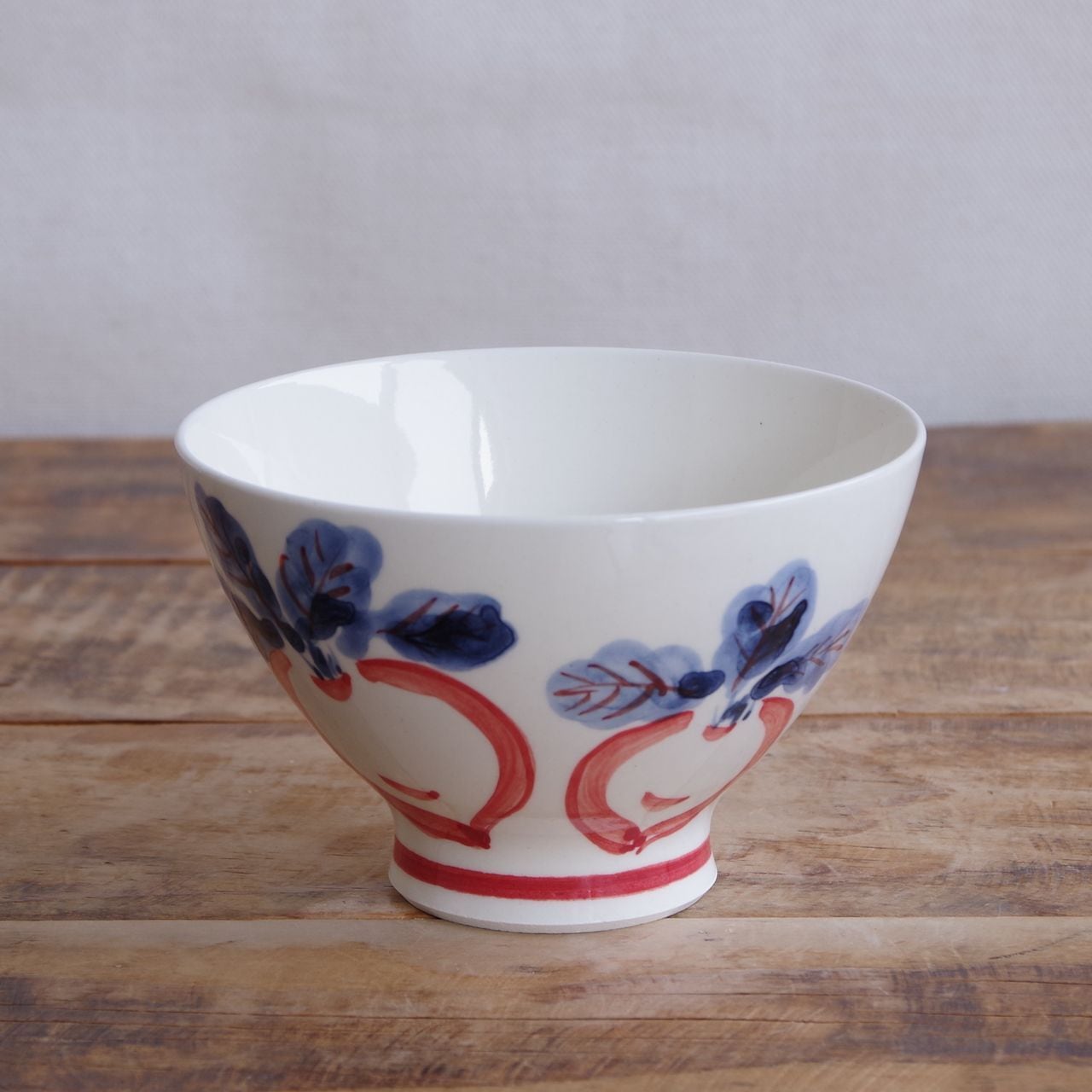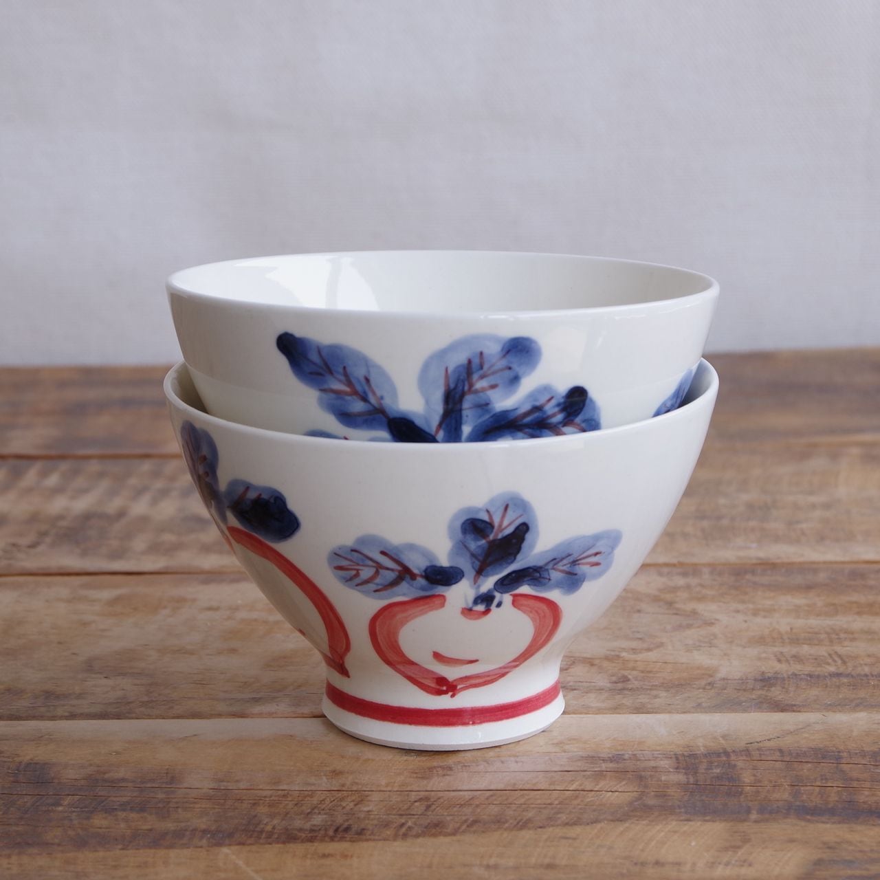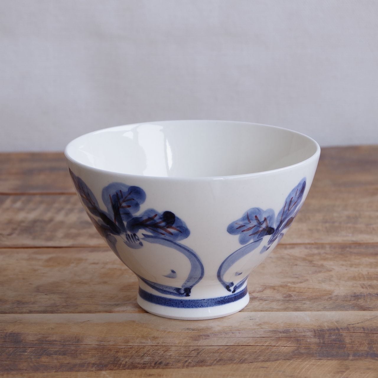【新品】 波佐見焼 筒山太一窯 手描 かぶら 飯碗 ご飯茶碗 赤 青 2色 昭和レトロ 和食器 日本製 ライスボウル ちゃわん 陶器