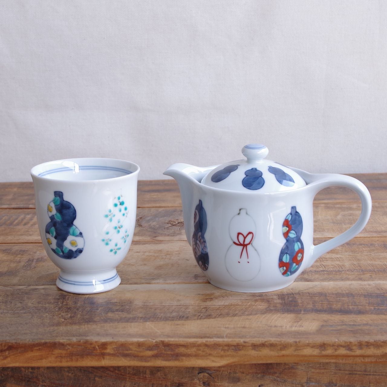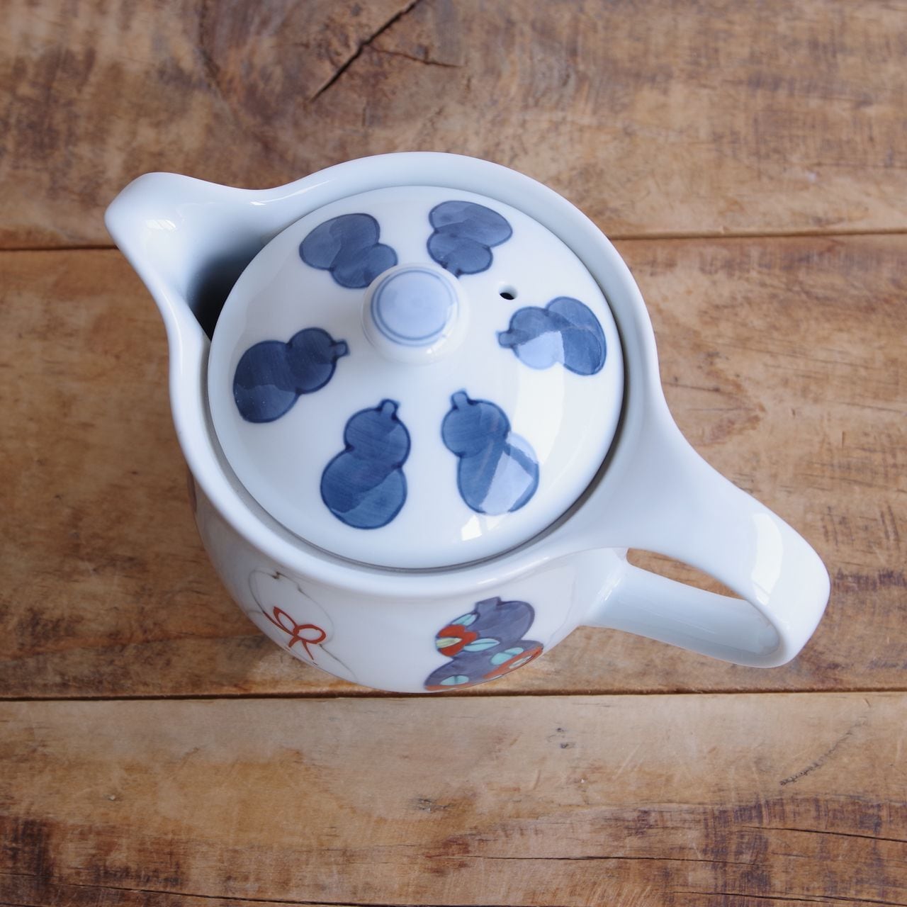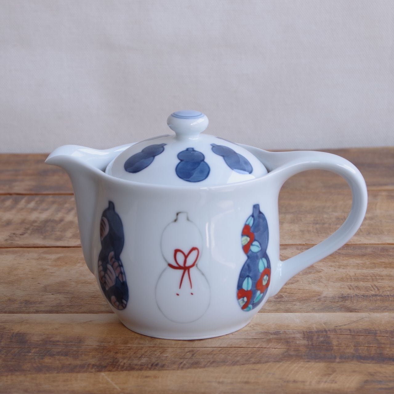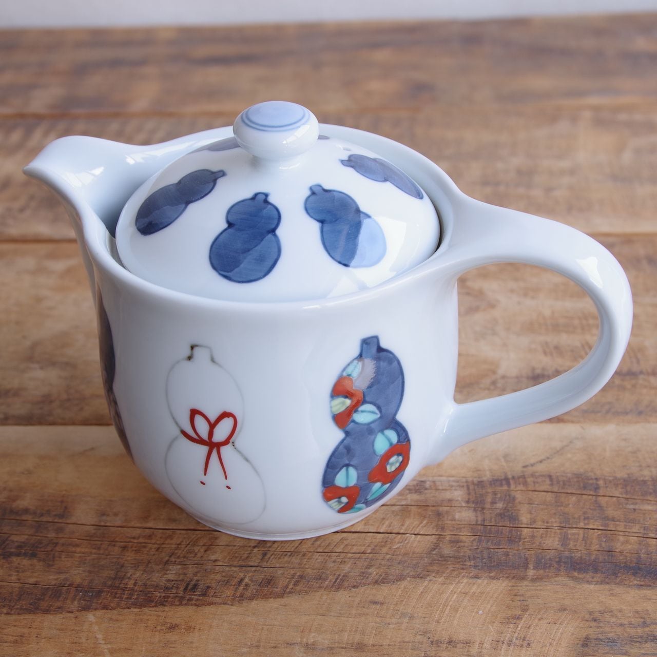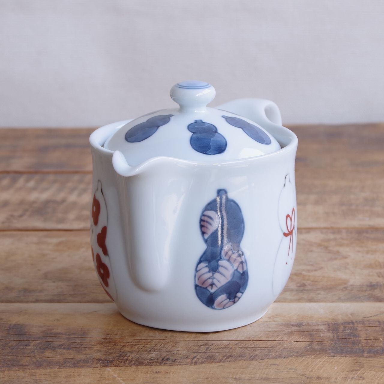 【新品】 有田焼 六瓢箪 ティーポット 茶こし付き ひょうたん レトロ 手描き むびょうたん 和食器 徳七窯 小さめ 陶磁器