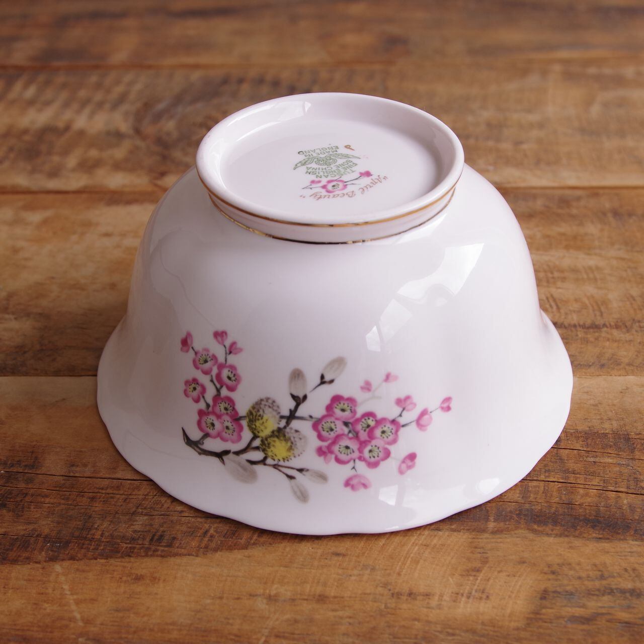 ボウルの内側ふちにも、小さな花をつけた枝が描かれています。
