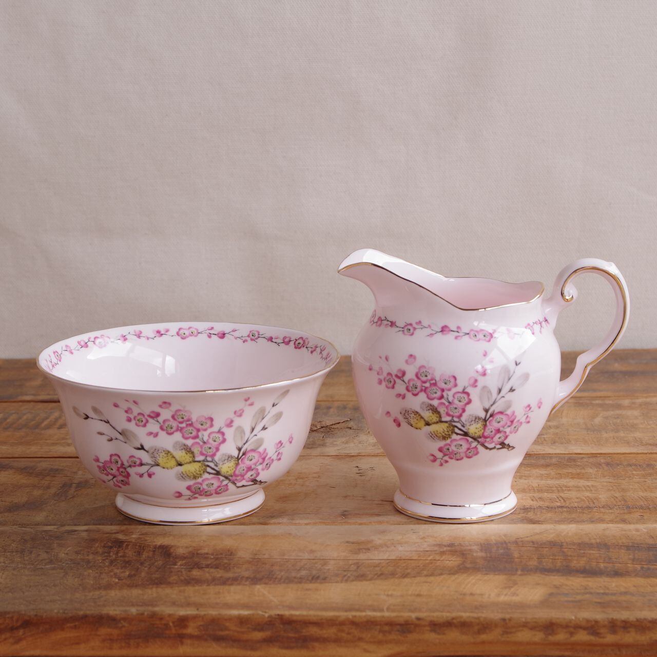 ロイヤルトスカン エイプリルビューティー ピンク 花柄 シュガーボウル #260304 イギリス ヴィンテージ 食器 陶器 アンティーク 桜 ねこやなぎ Royal Tuscan April Beauty ロイヤルタスカン 小鉢