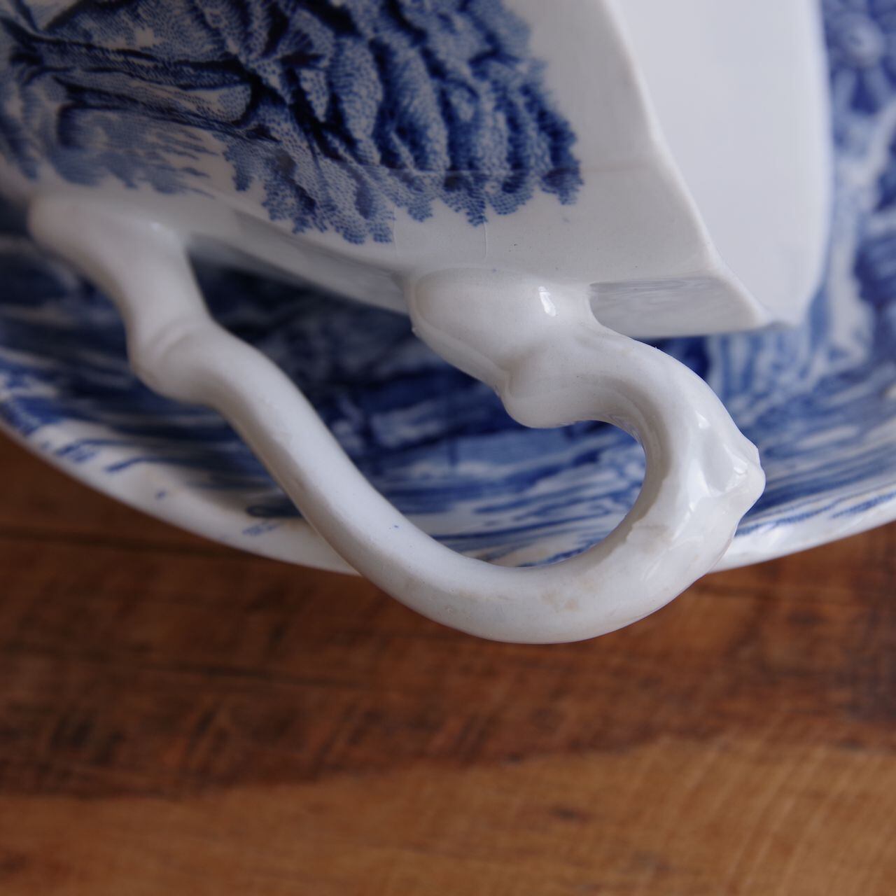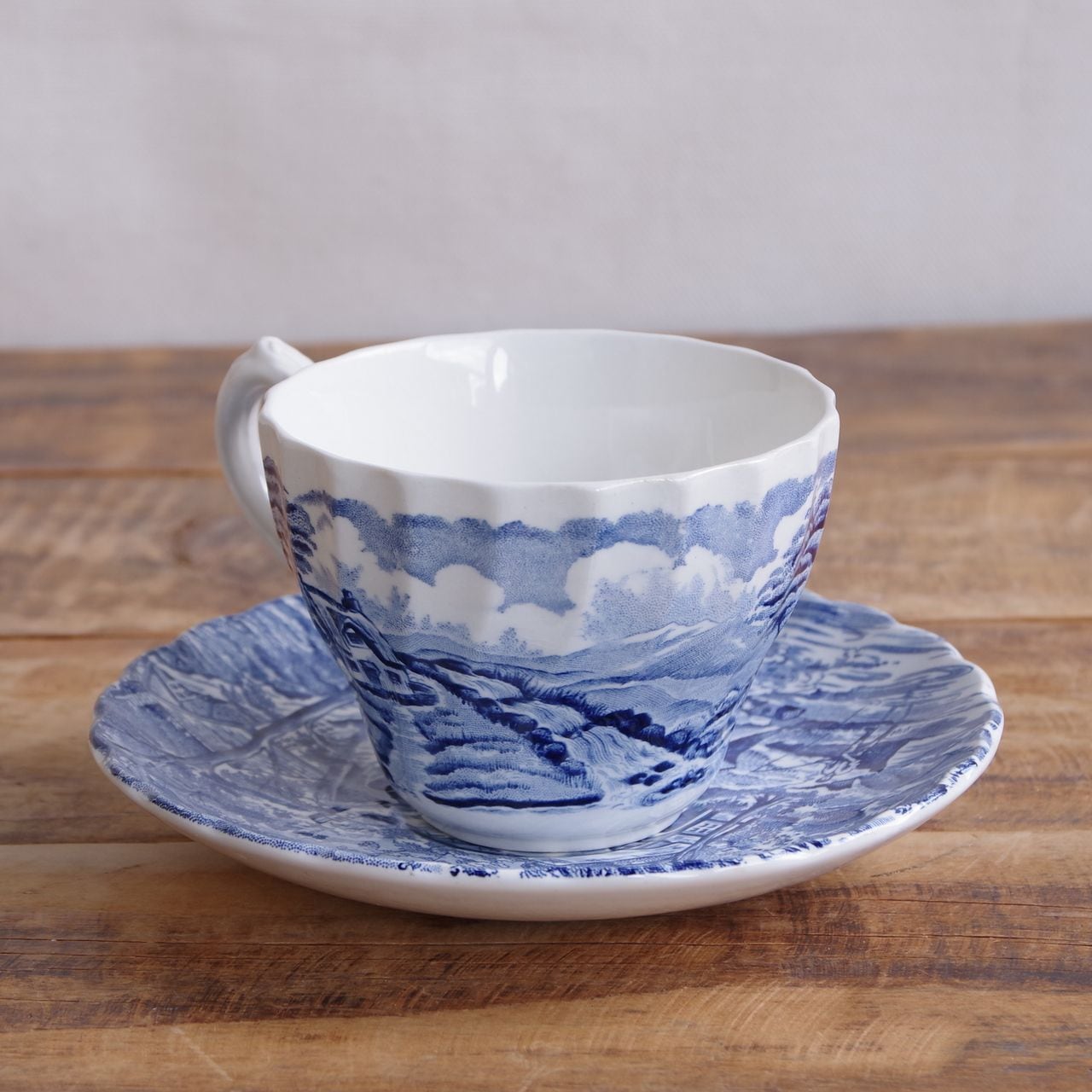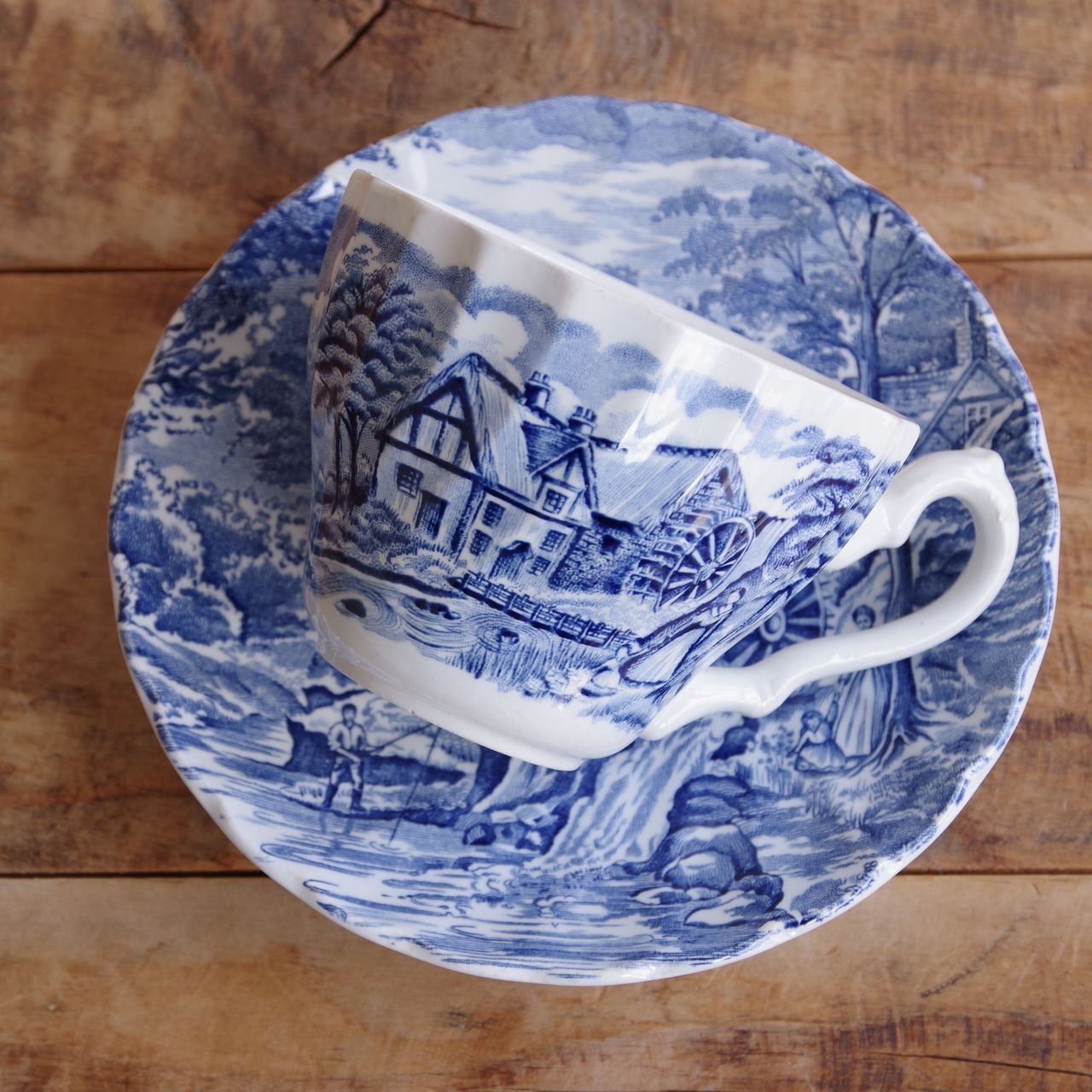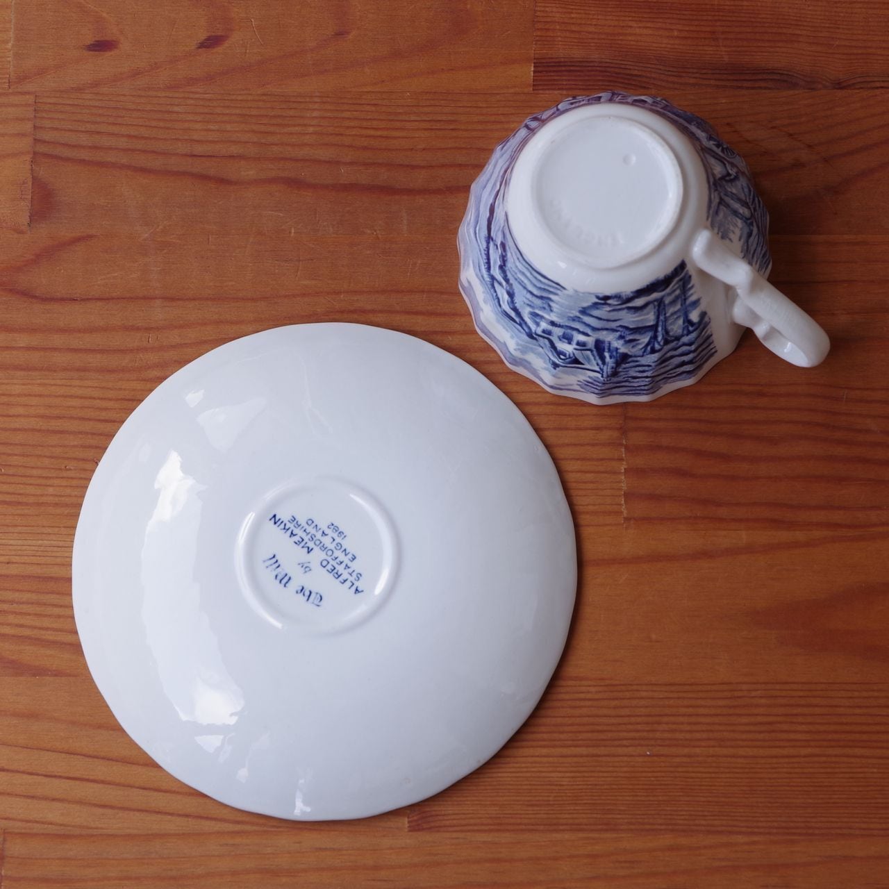 アルフレッド・ミーキン ザ ミル ブルー コーヒーカップ&ソーサー Alfred Meakin The Mill #260305-1 イギリス ヴィンテージ 食器 陶器 レトロ ティーカップ 水車小屋 風景 釣り 家 青