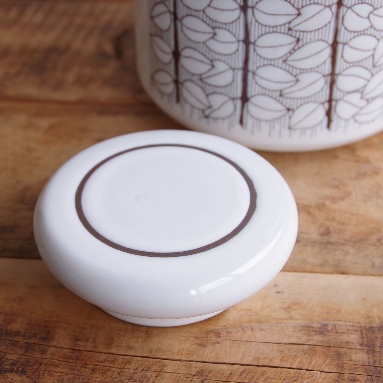 こちらのポットの蓋には、上面中央付近にわずかに色むらがあり、小さくグレーに見える箇所があります。