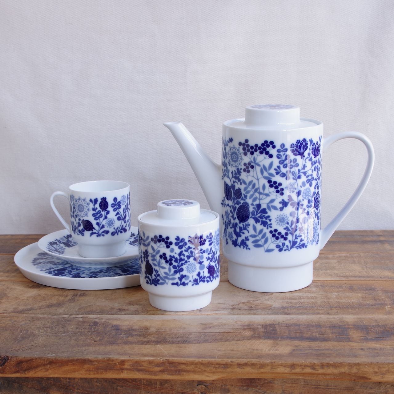 メリタ コバルトブルー ボタニカル柄 シュガーポット Melitta ドイツ ヴィンテージ食器 アンティーク 陶磁器 シルエット 北欧風 #260309 Hamburg ハンブルク 蓋物 キャニスター