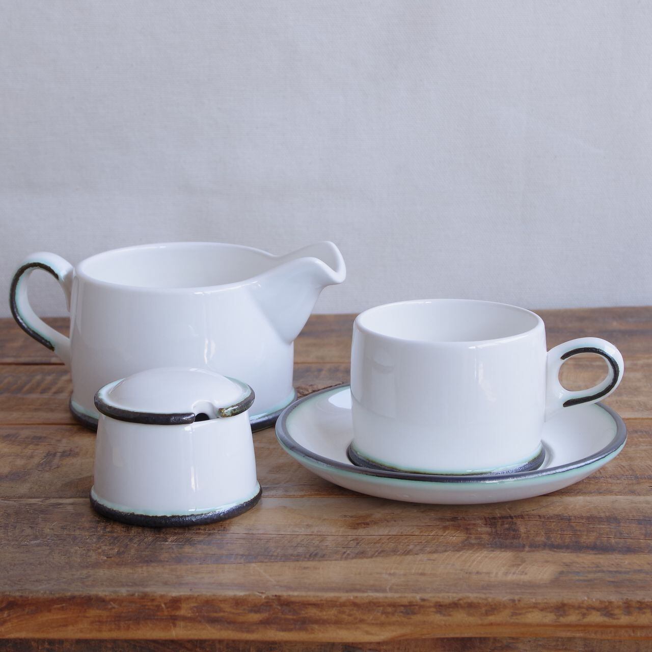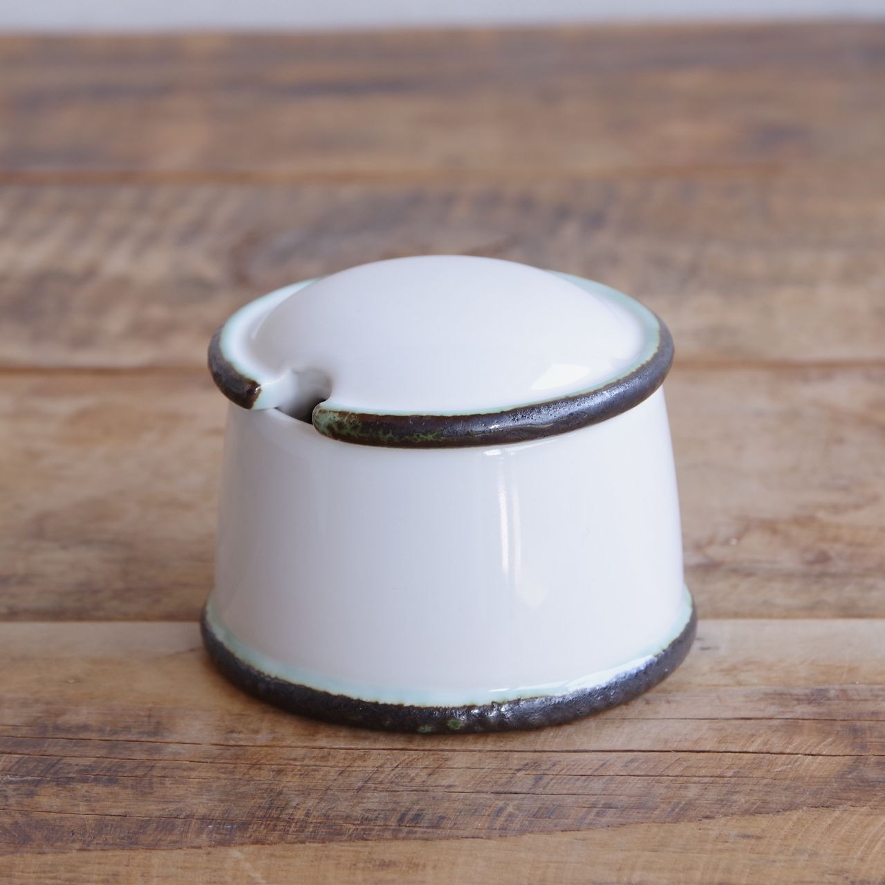 シュガーポットとしてもお使いいただけると思いますが、クリーマーと比べるとかなり小さなサイズですので、マスタード用なのではないかと思われます。