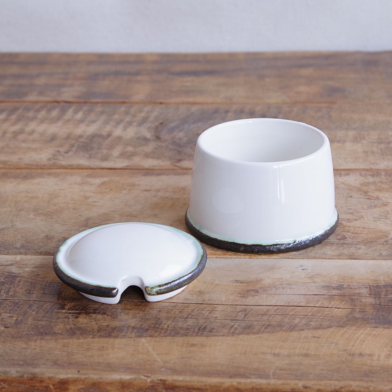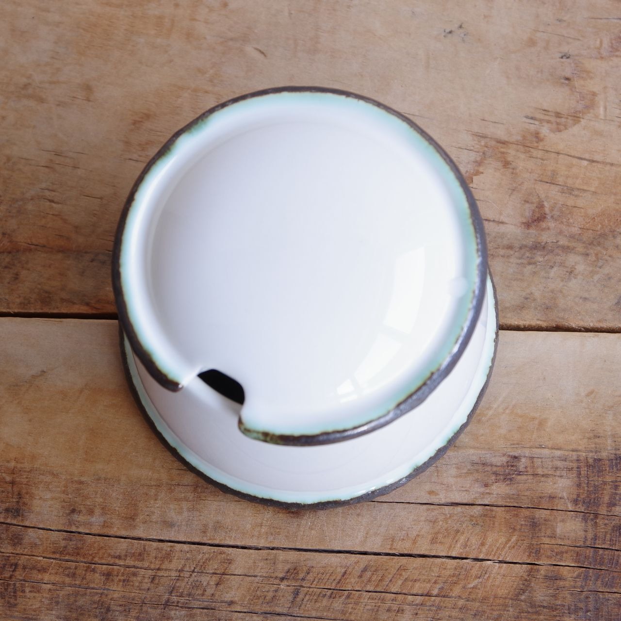 ウェッジウッド アークティック マスタードポット シュガーポット ヴィンテージ 食器 Wedgwood Arctic #260309 イギリス 英国 陶器 アンティーク シンプル グリーン 渕錆 キャニスター からし入れ 砂糖壺 ミニサイズ