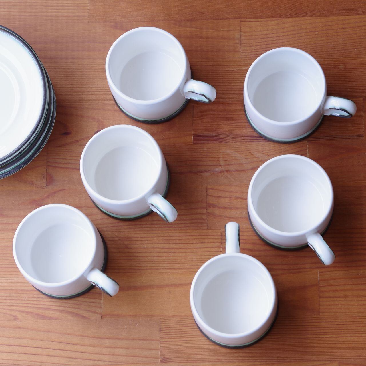 ウェッジウッド アークティック カップ&ソーサー ヴィンテージ 食器 Wedgwood Arctic #260309-1~6 イギリス 英国 陶器 アンティーク シンプル グリーン 渕錆 コーヒーカップ ティーカップ レトロ