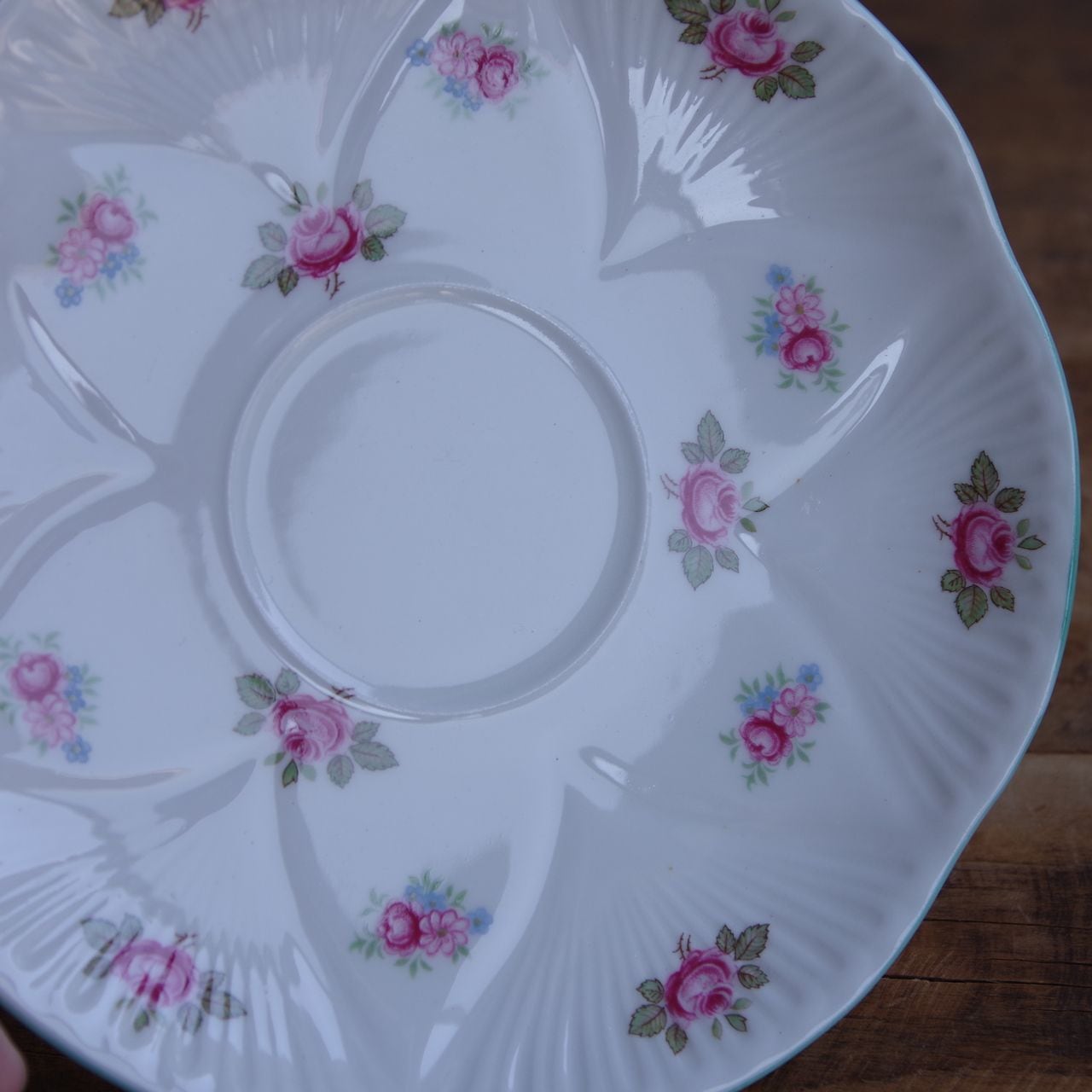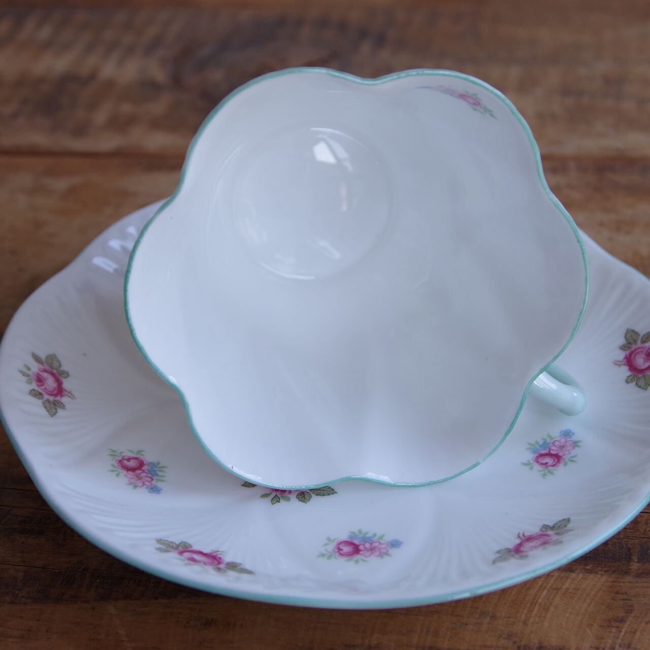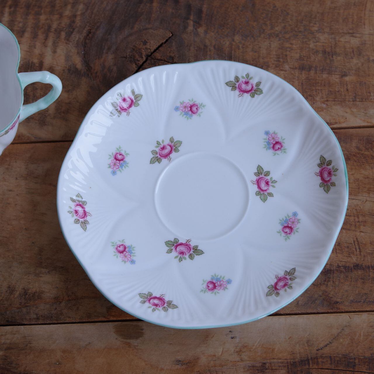 ソーサーにも花のような形にレリーフが入っています。