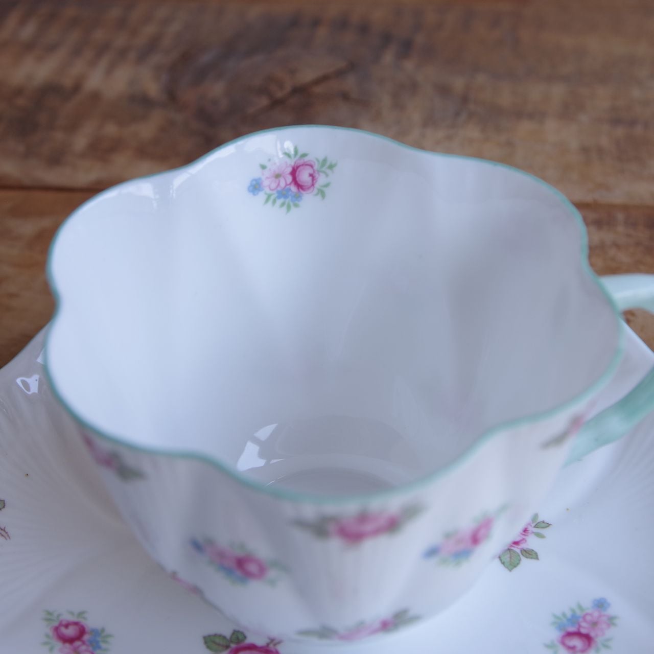 シェリー ディンティー ローズバッド 薔薇 花柄 カップ&ソーサー アンティーク 食器 Shelley Dainty Rosebud #260309-02 イギリス製 ヴィンテージ 人気 グリーン コーヒーカップ ティーカップ