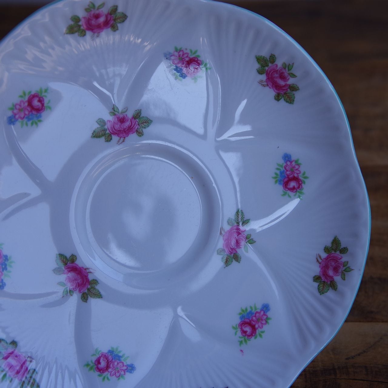 ソーサーにも花のような形にレリーフが入っています。