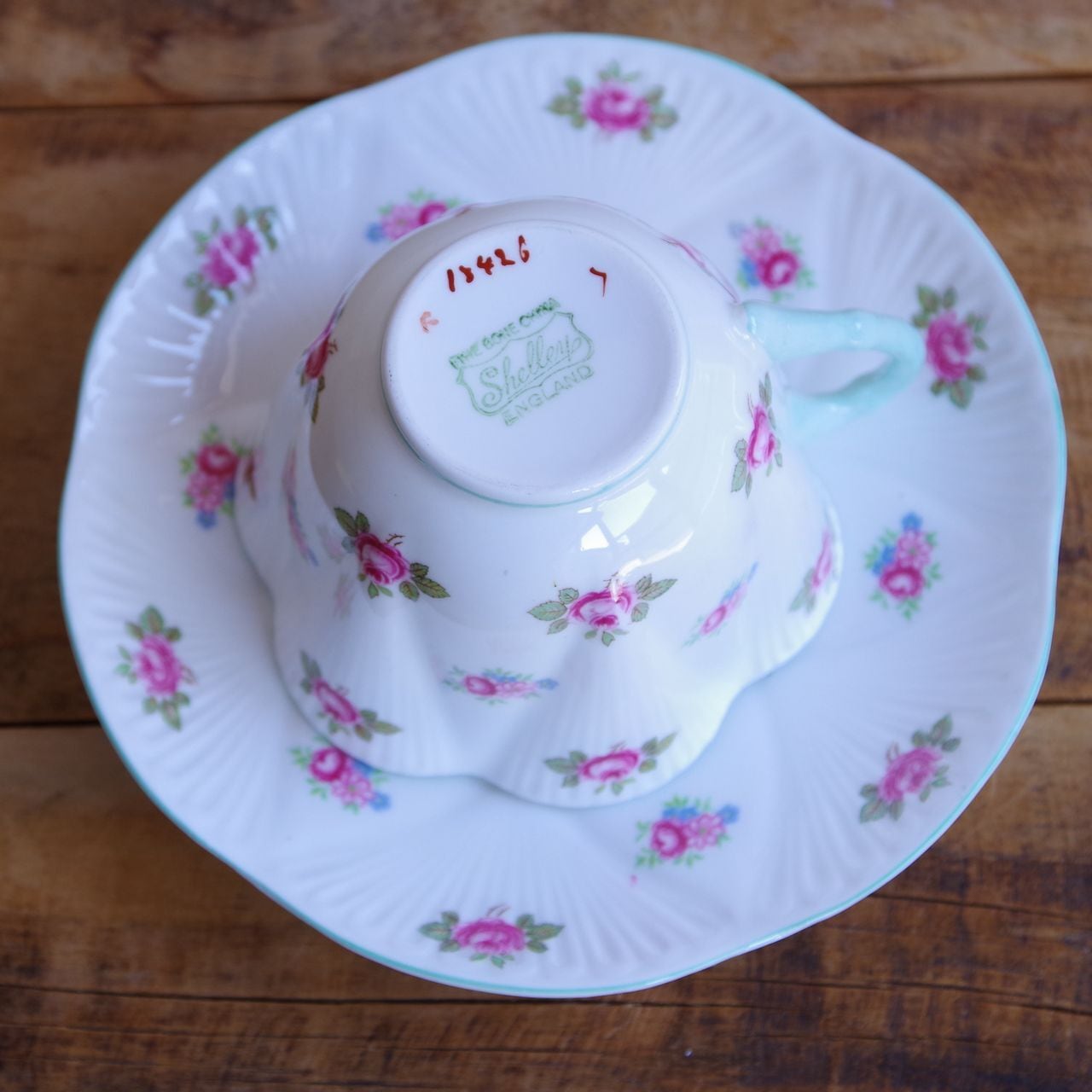 イギリスの陶磁器メーカー Shelley のカップ&ソーサーです。