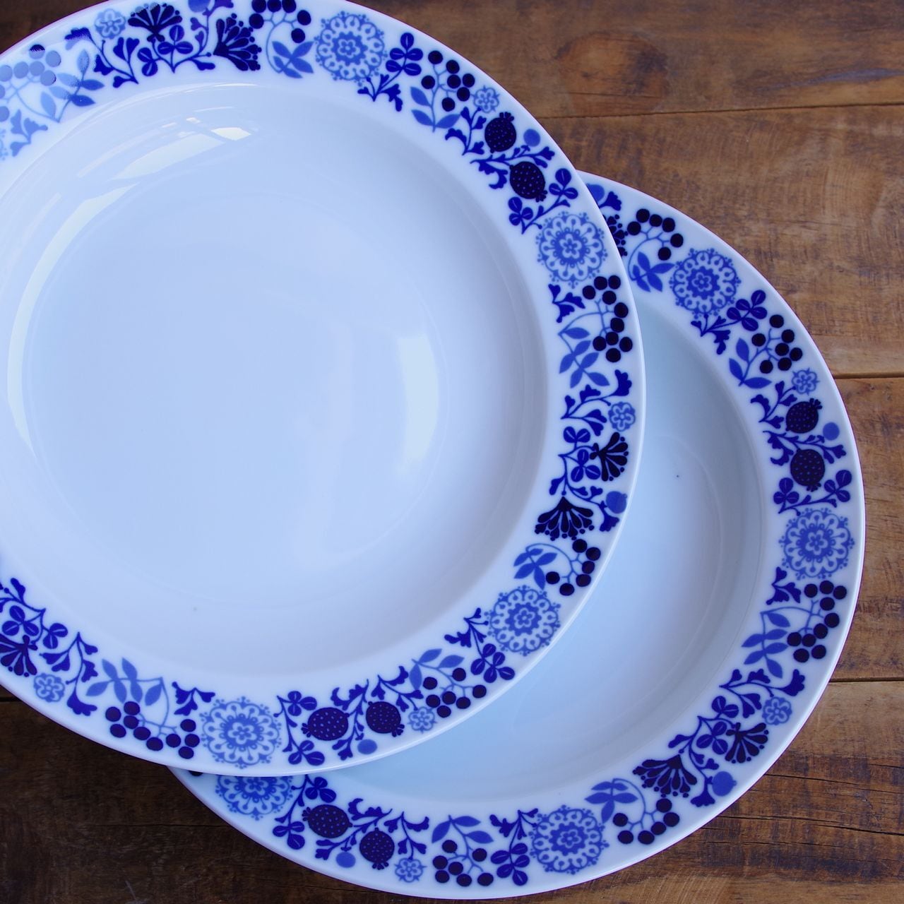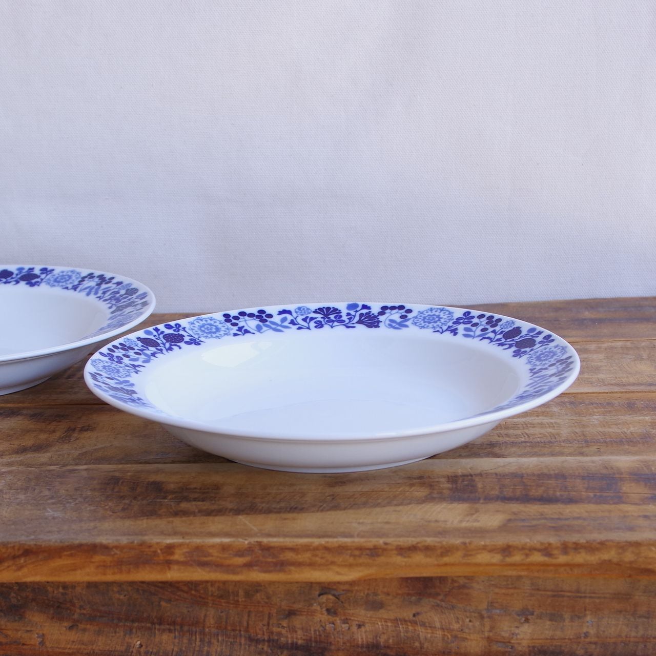 2枚セット メリタ コバルトブルー ボタニカル柄 スーププレート 深皿 23cm ドイツ ヴィンテージ食器 アンティーク 陶磁器 シルエット 北欧風 #260311-2 Melitta Hamburg ハンブルク パスタ カレー皿 リムプレート