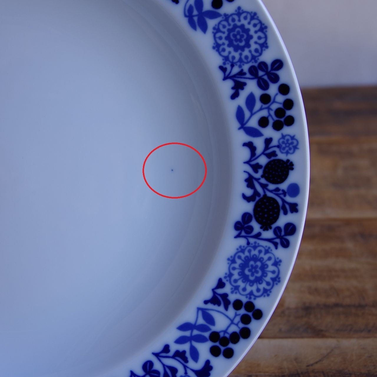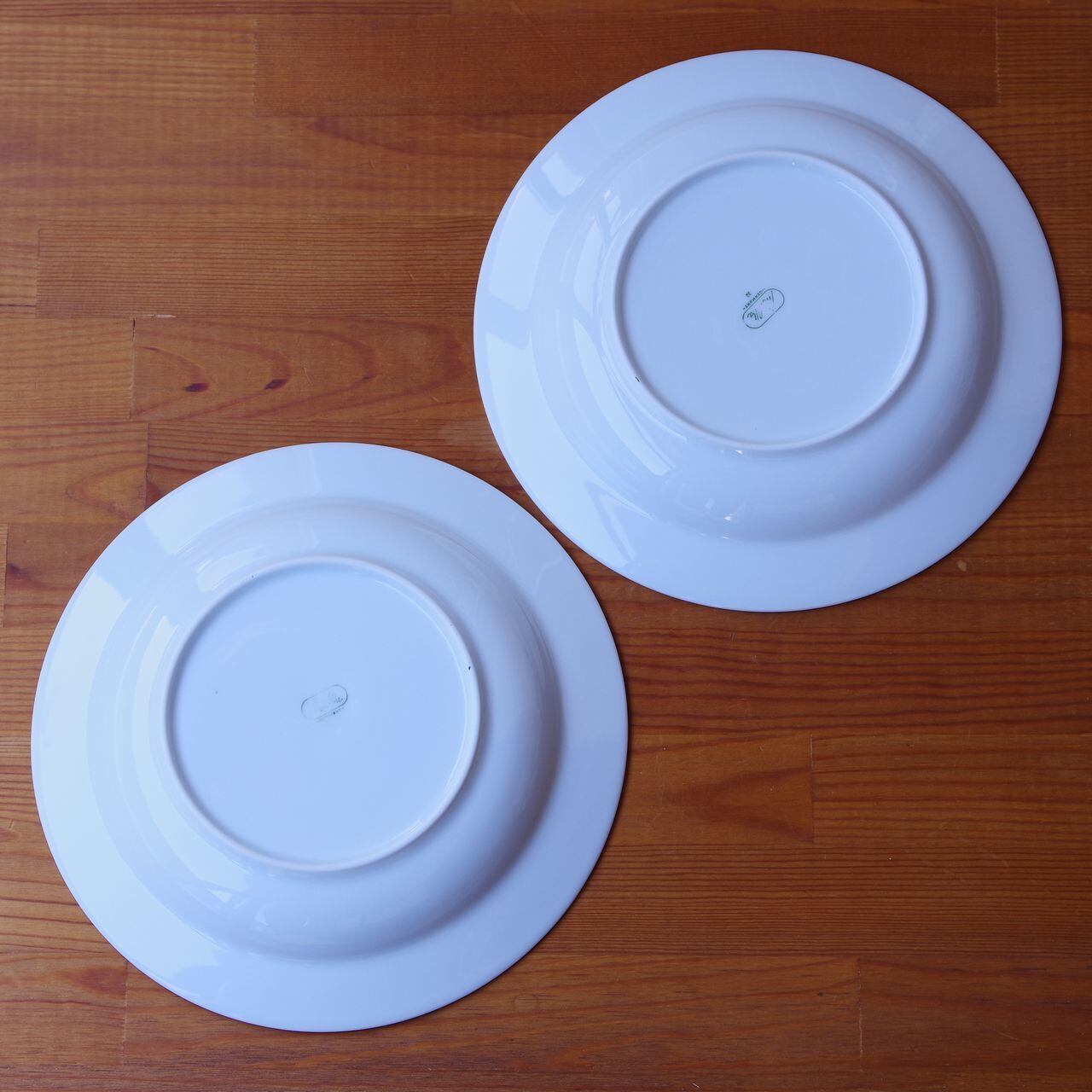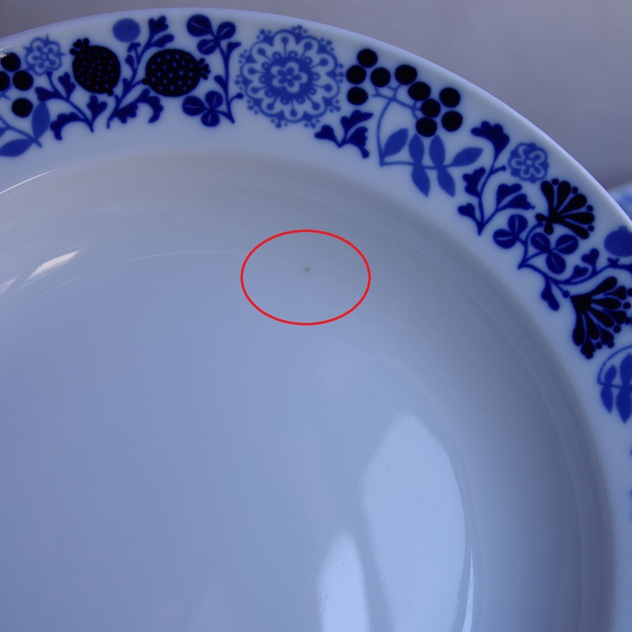こちらのお皿には、それぞれ、表面にごく小さく茶点、青い点(絵の具汚れ)があります。