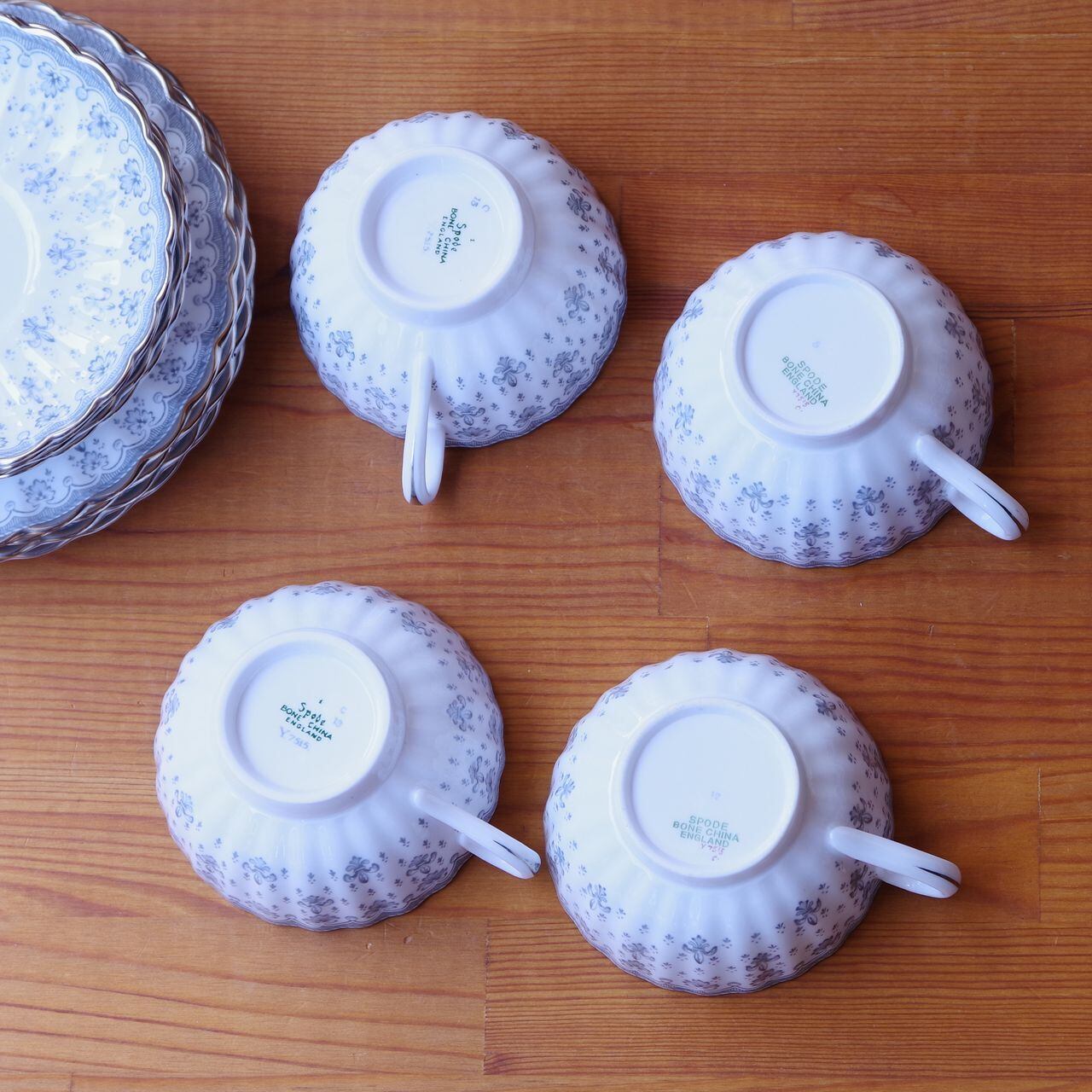 イギリスの陶器メーカー SPODE のカップ、ソーサー、プレートのトリオです。
