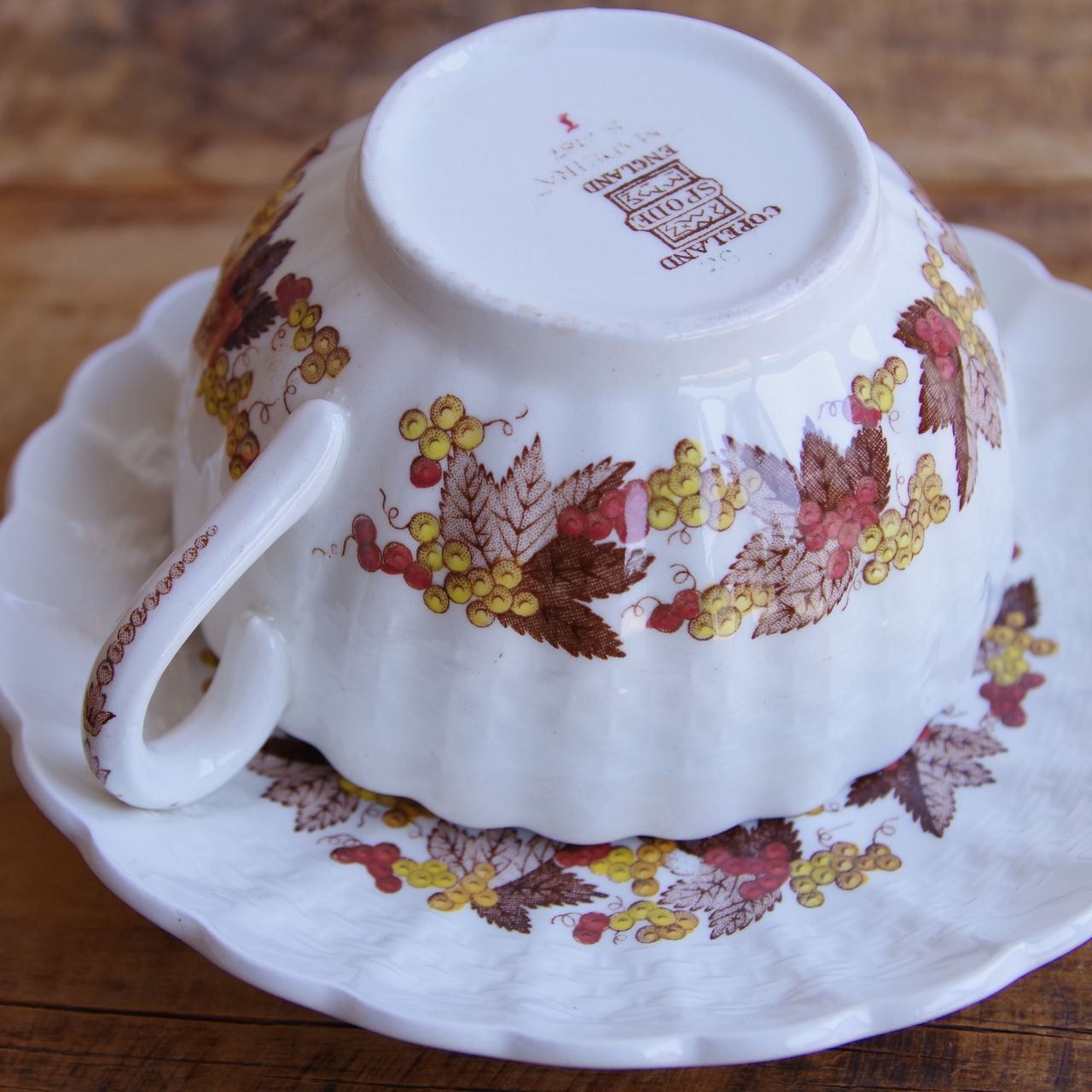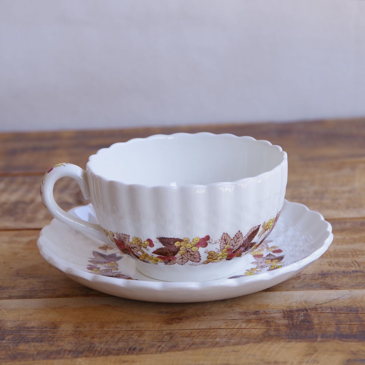 スポード マデイラ ティーカップ ソーサー Spode Madeira #260317-1 葡萄 かずら 実 ブラウン アンティーク ヴィンテージ 陶器 食器 カップ&ソーサー コーヒーカップ デュオ