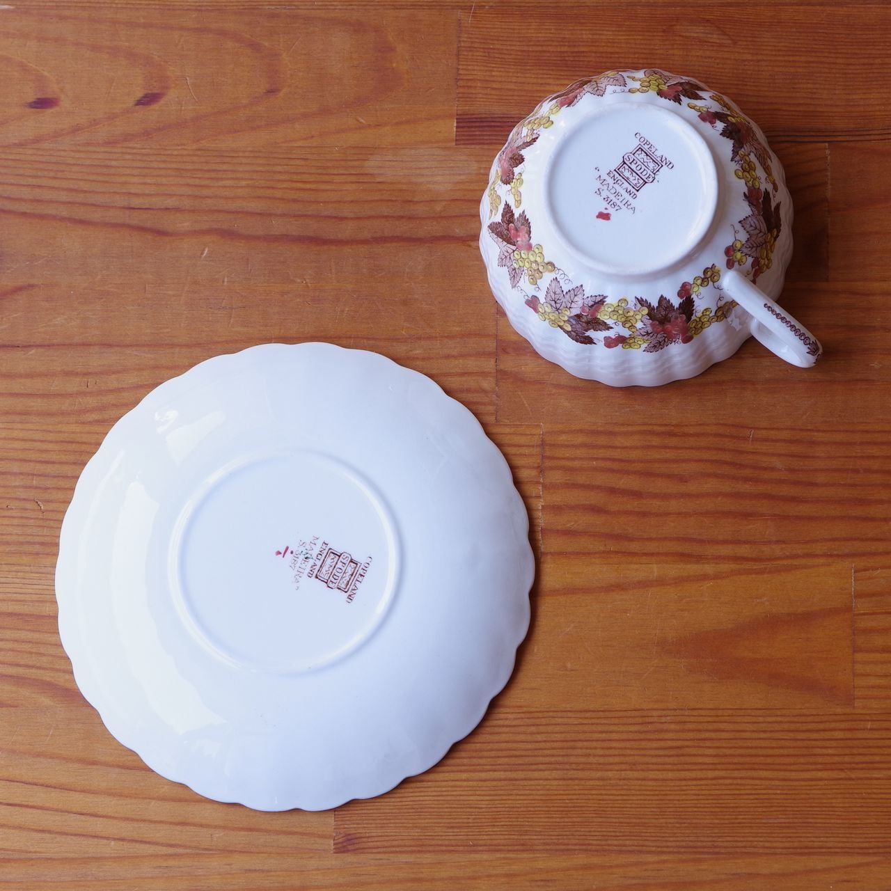 スポード マデイラ ティーカップ ソーサー Spode Madeira #260317-3 葡萄 かずら 実 ブラウン アンティーク ヴィンテージ 陶器 食器 カップ&ソーサー コーヒーカップ デュオ