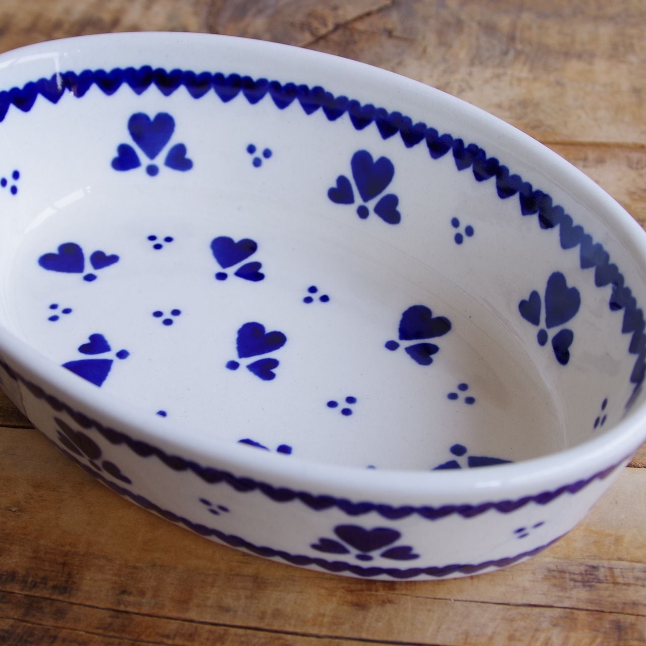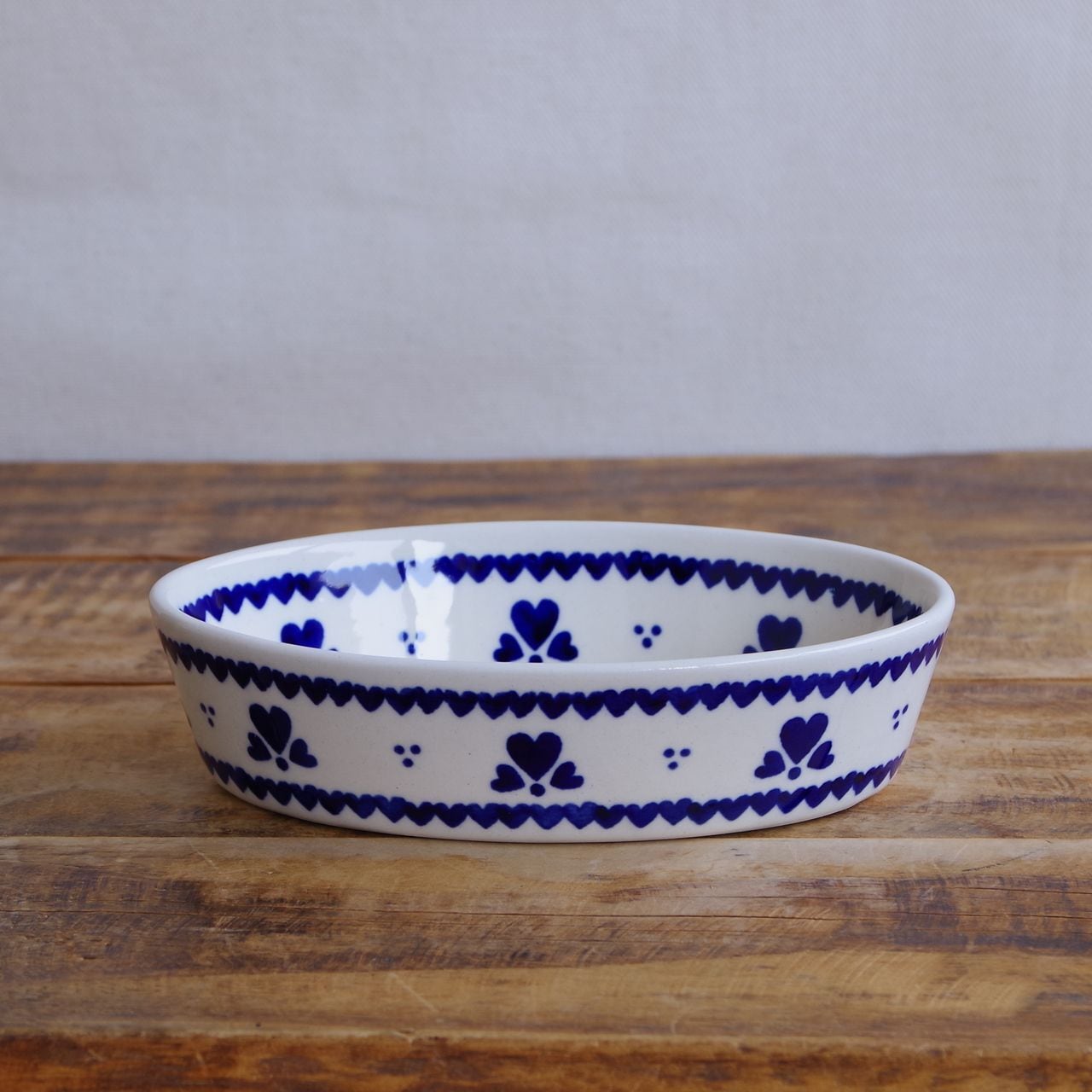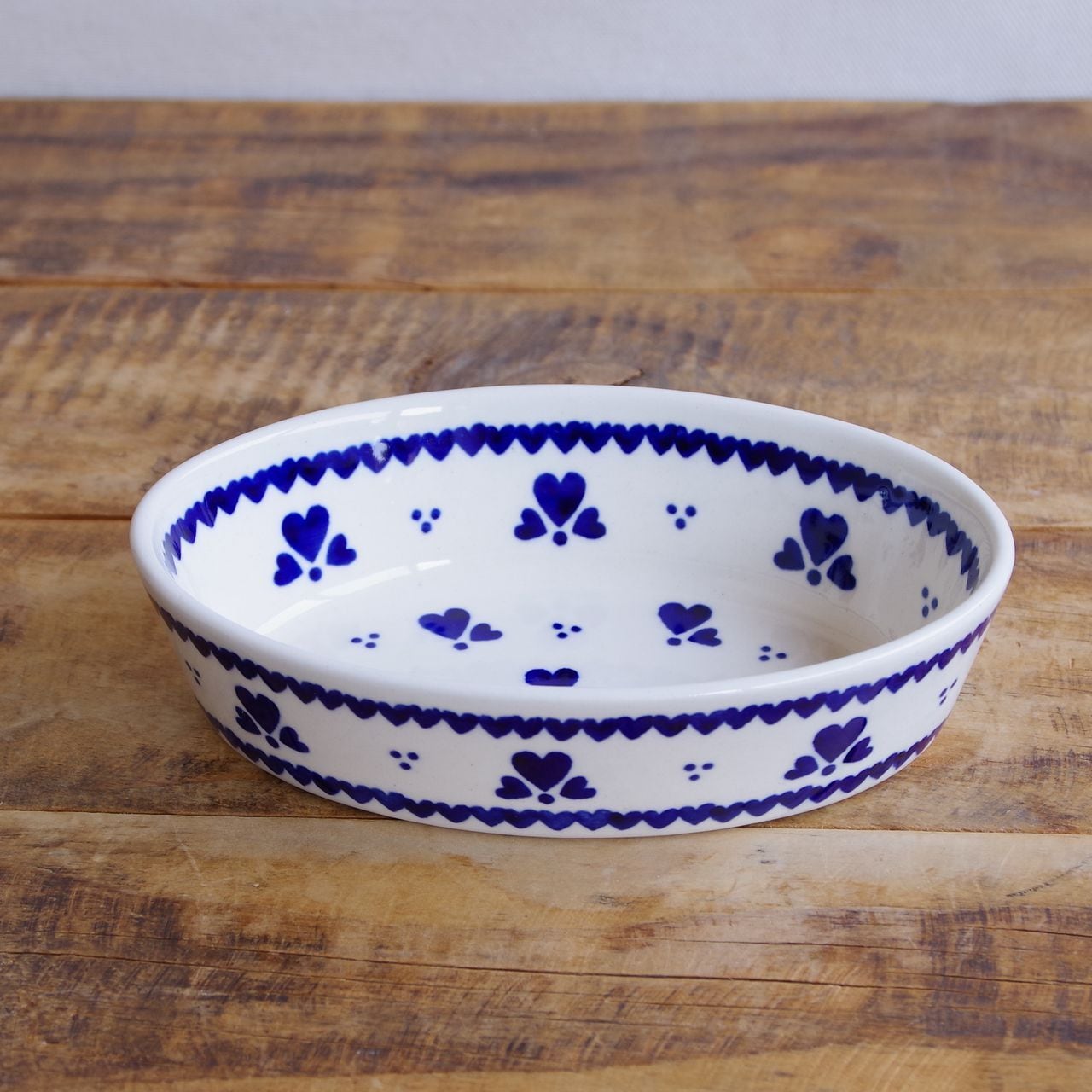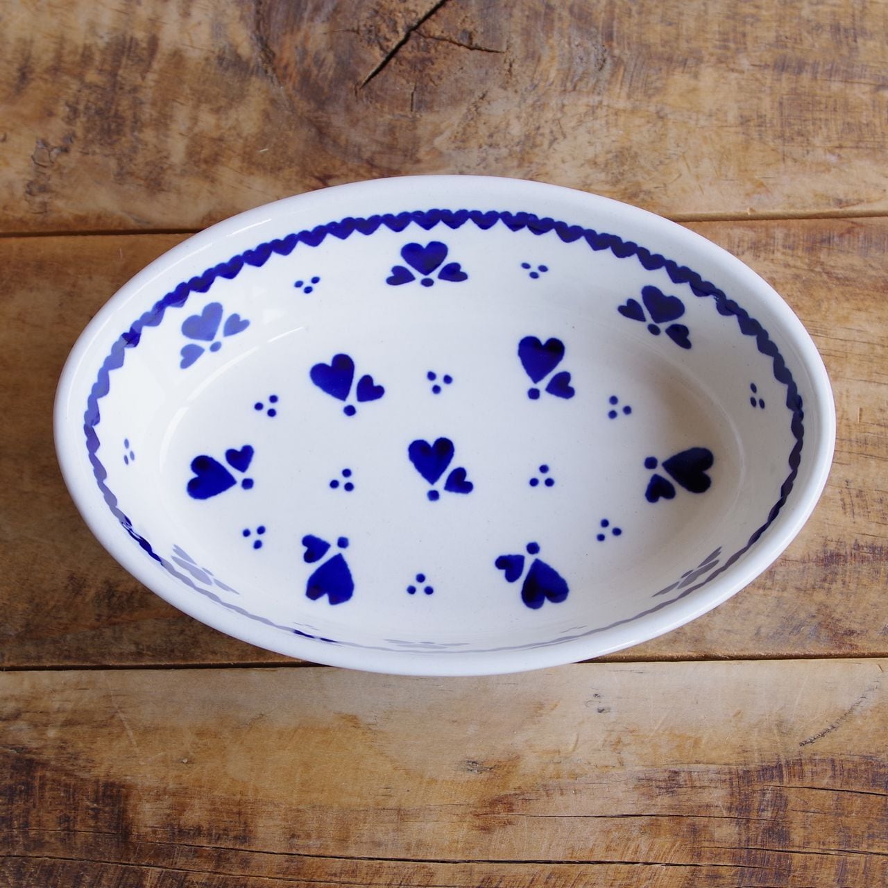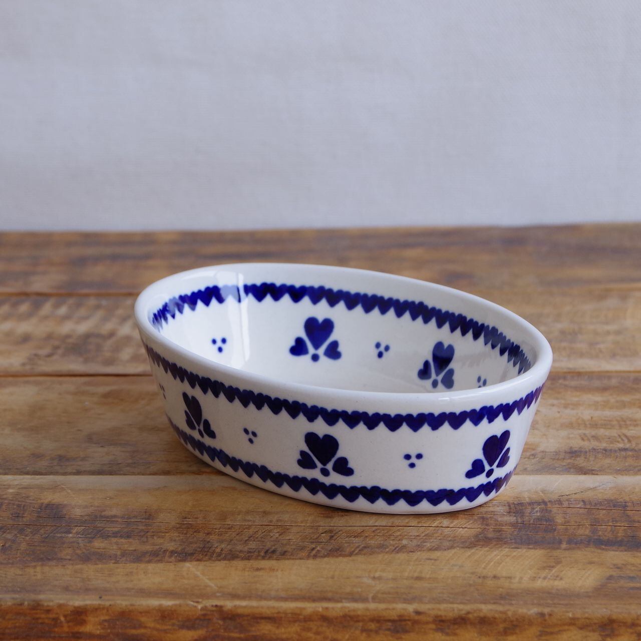 【新品】 ポーランド食器 ポーリッシュポタリー オーバルボウル グラタン皿 オーブンディッシュ 16cm 小さめ ネイビー ハート柄 903-D1333A ボレスワヴィエツ陶器 Boleslawiec かわいい 東欧レトロ 雑貨 小鉢 楕円 深皿
