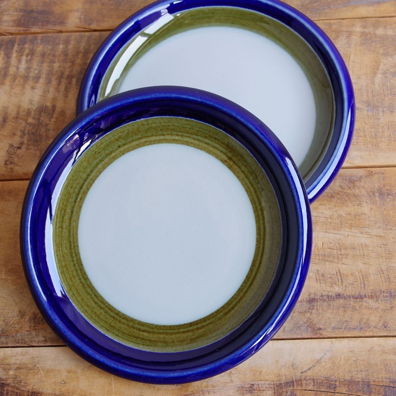 Elizabeth というシリーズのもので、グレーの地のリム部分にグリーンとネイビーのラインが手描きされています。