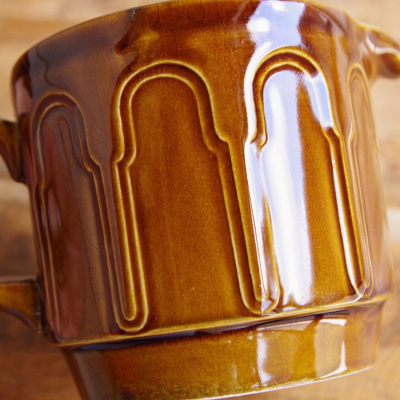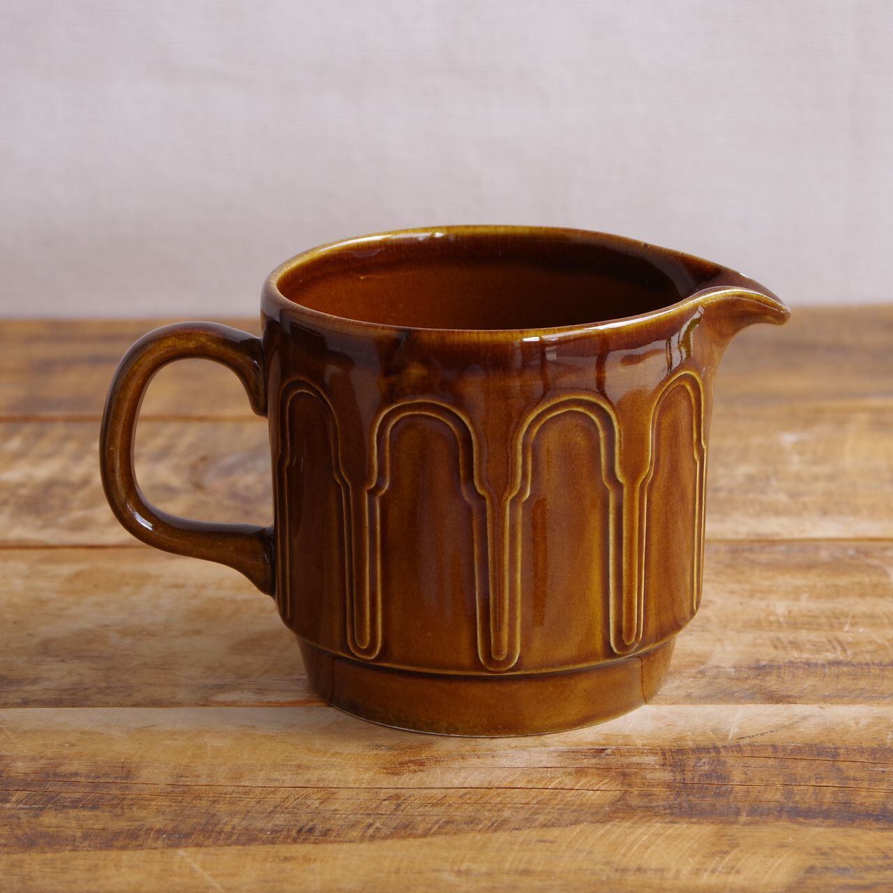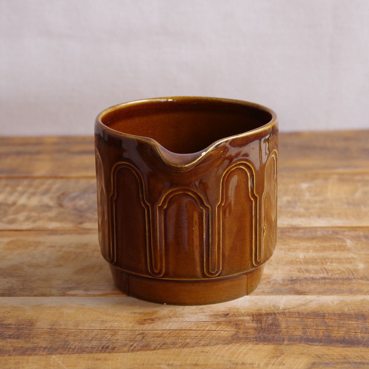 ビルトンズ ブラウン レリーフ シュガーボウル クリーマー イギリス製 ヴィンテージ 食器 #260402 Biltons 陶器 レトロ モダン あめ色 ミルク入れ 小鉢 シンプル