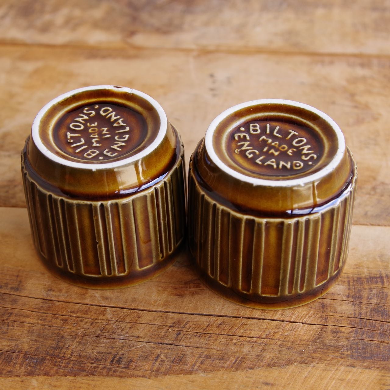 2個セット ペア ビルトンズ ブラウン レリーフ エッグカップ エッグスタンド イギリス製 ヴィンテージ 食器 #260402 Biltons 陶器 レトロ モダン あめ色 ゆで卵 キッチン 雑貨
