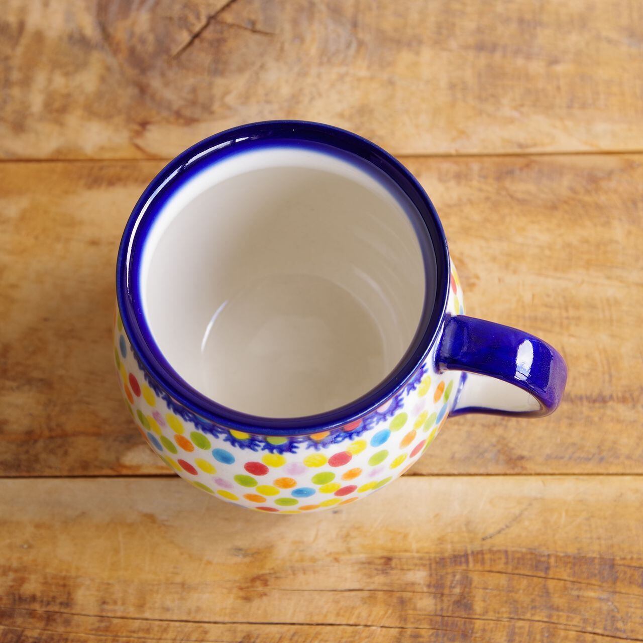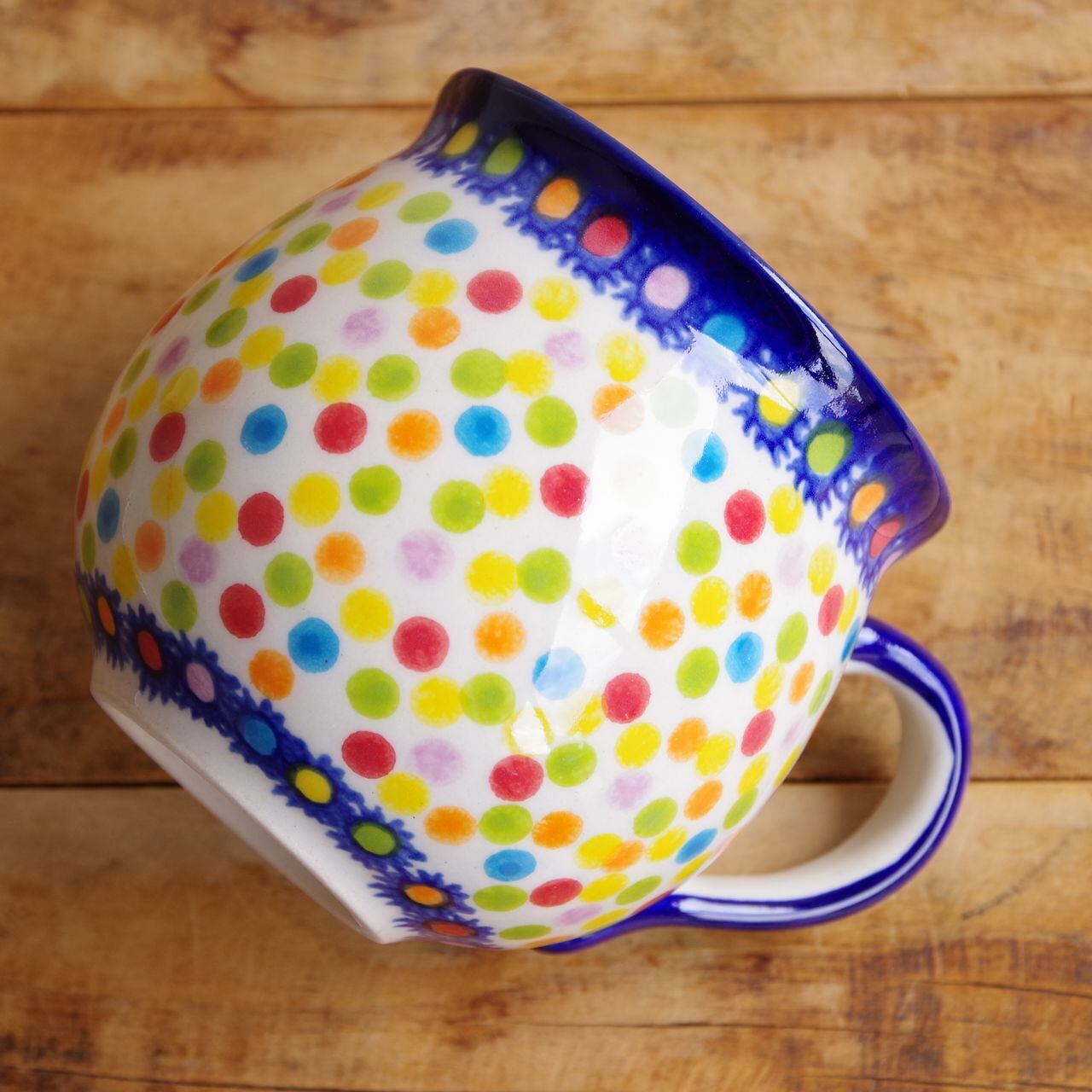 【新品】 ポーランド食器 ポーリッシュポタリー マグカップ Lサイズ 350ml カラフル 水玉柄 ドット柄 V352-C133 ボレスワヴィエツ陶器 Boleslawiec コーヒーカップ ティーカップ ラージサイズ たっぷり ぽってり 丸い 大きめ