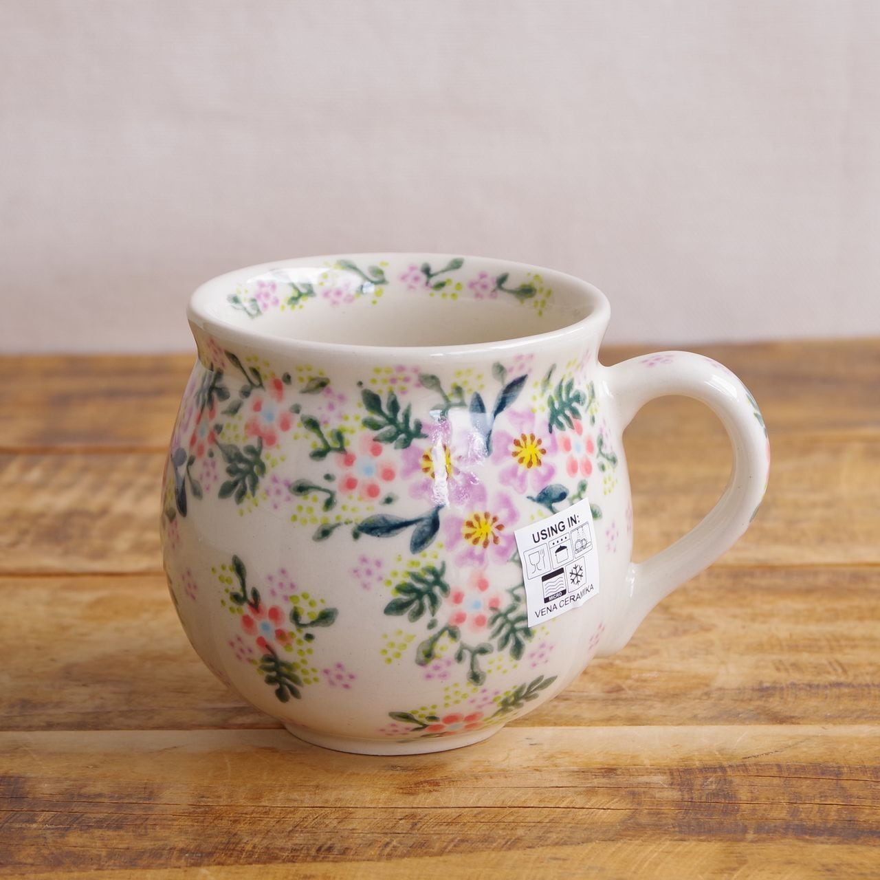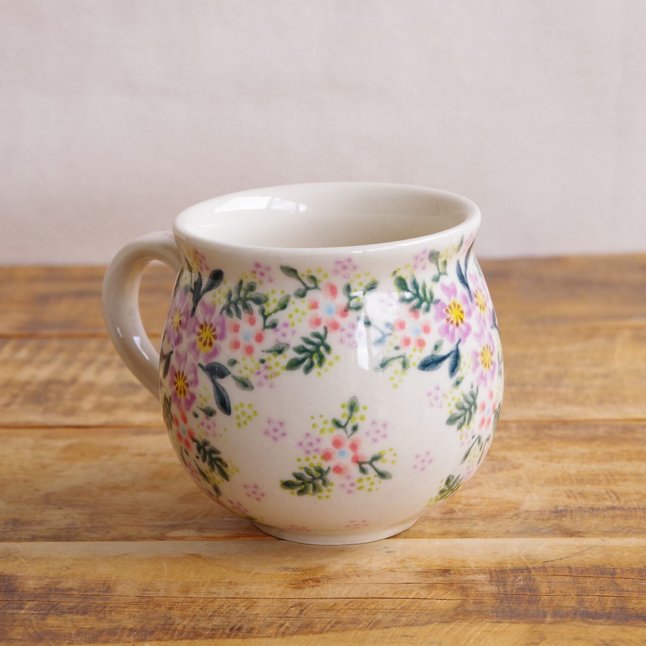 【新品】 ポーランド食器 ポーリッシュポタリー マグカップ Lサイズ 350ml 紫 ピンク 花柄 トレリス V352-U489 ボレスワヴィエツ陶器 Boleslawiec コーヒーカップ ティーカップ ラージサイズ たっぷり ぽってり 丸い 大きめ