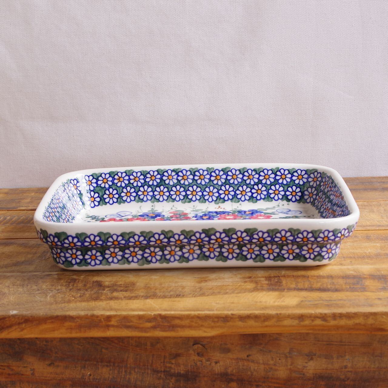 大きめの長方形をしたお皿で、少し深さがあります。