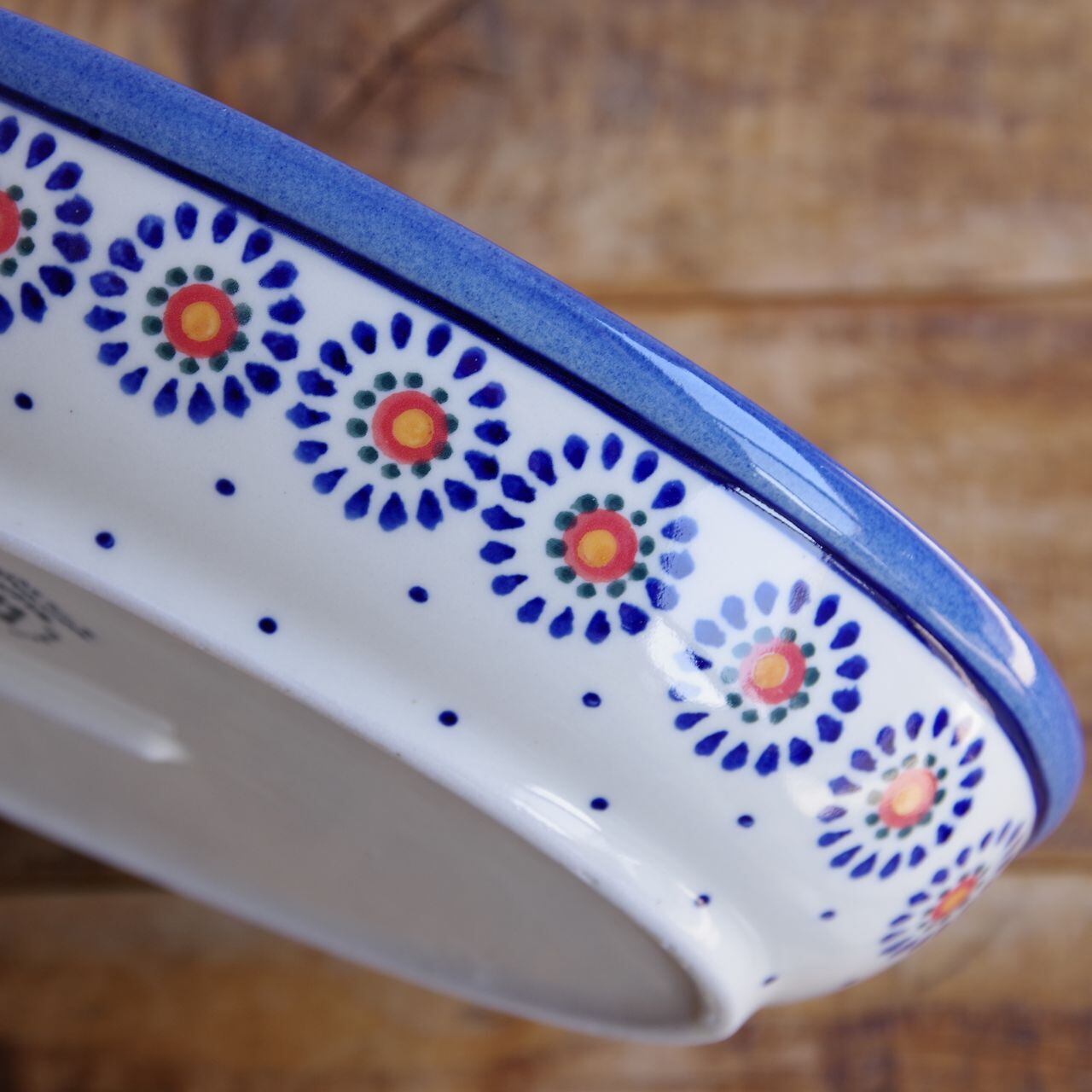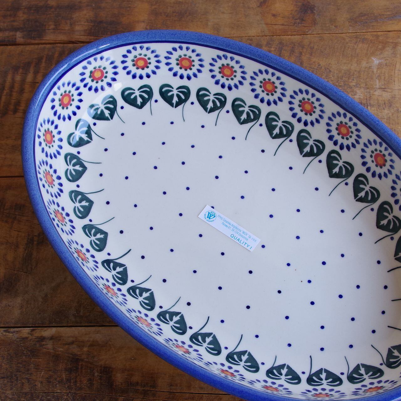 【新品】 ポーランド食器 ポーリッシュポタリー オーバルボウル オーブンディッシュ グラタン皿 ネイビー ひまわり 花柄 W210-132 ボレスワヴィエツ陶器 Boleslawiec かわいい 大きめ 29cm 楕円 深皿