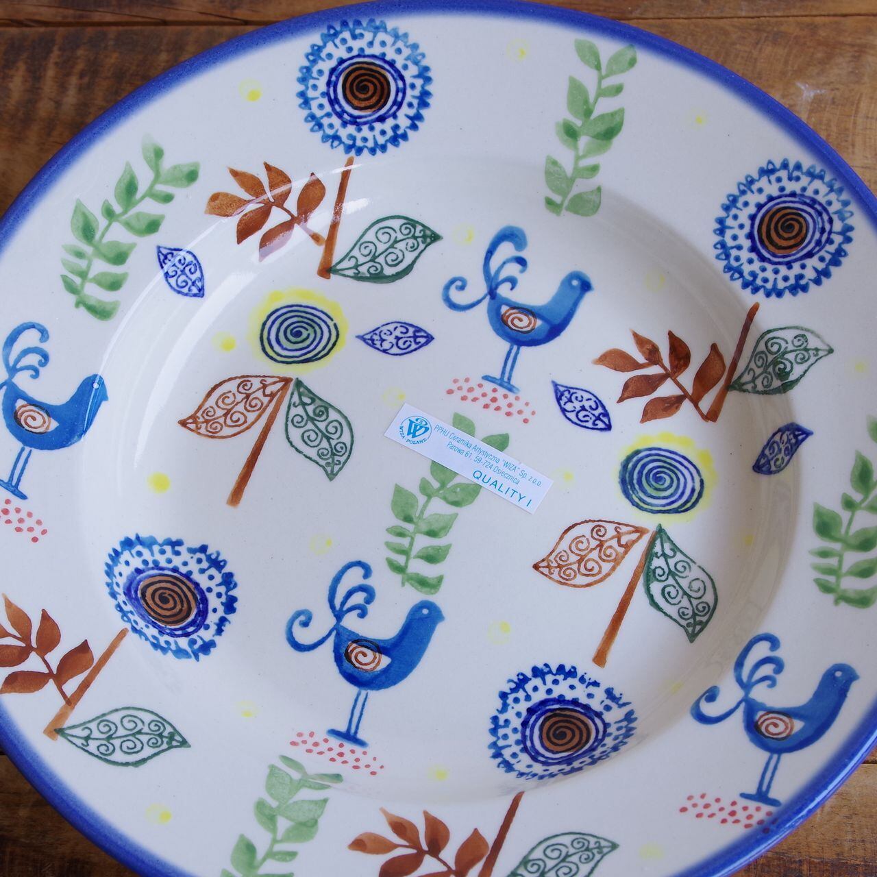 【新品】 ポーランド食器 ポーリッシュポタリー スーププレート 深皿 鳥 花 キングバード 木の葉 W204-L15 ボレスワヴィエツ陶器 Boleslawiec かわいい 大きめ 23cm カレー皿 パスタプレート