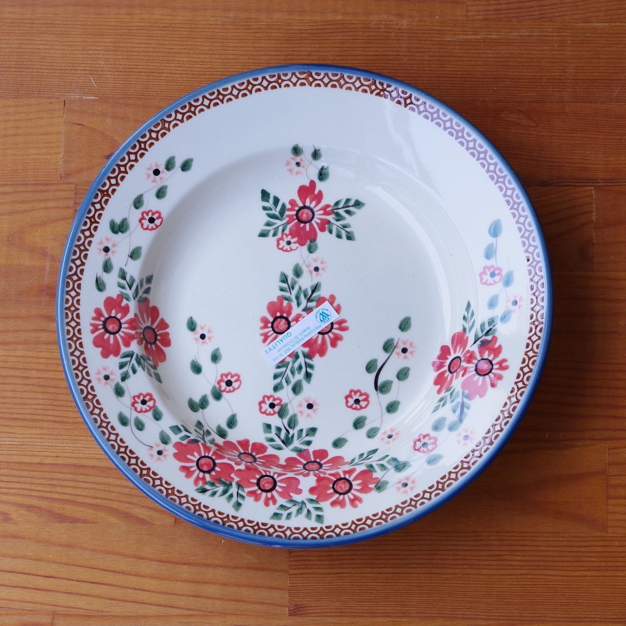 【新品】 ポーランド食器 ポーリッシュポタリー スーププレート 深皿 赤 ピンク 花柄 W204-142 ボレスワヴィエツ陶器 Boleslawiec かわいい 大きめ 23cm カレー皿 パスタプレート