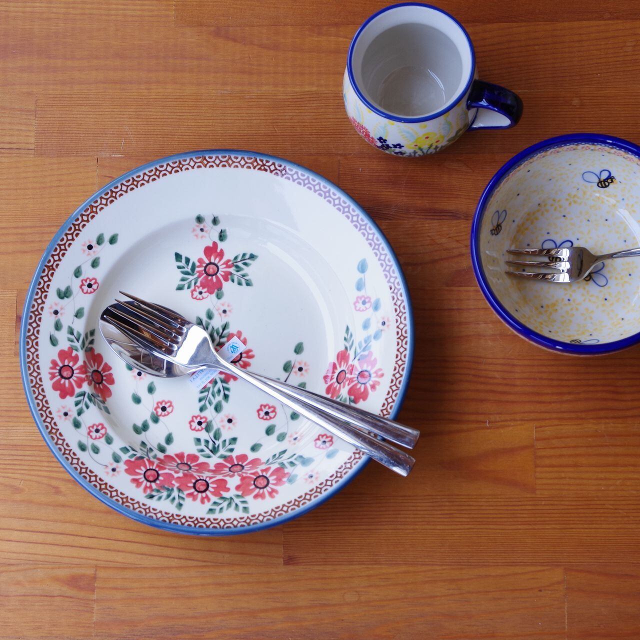 ポーランド食器は、ひとつひとつ、職人さんの手作業で、スタンプをぺたぺたと押し付けて絵柄がつけられています。