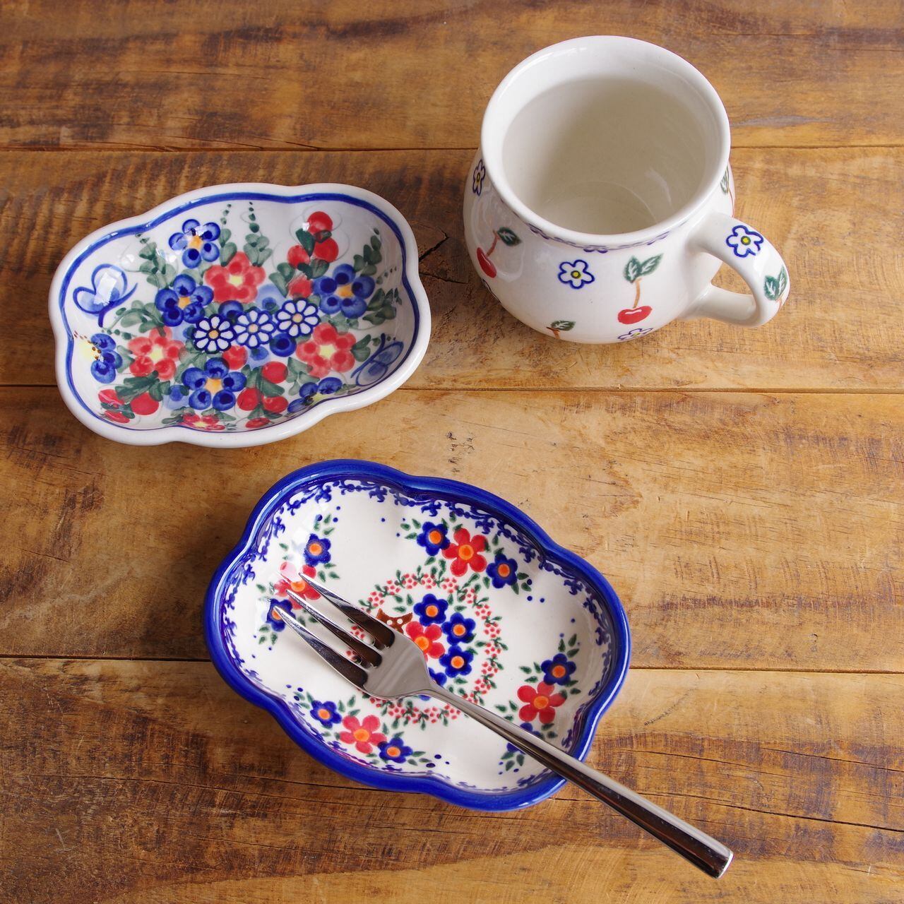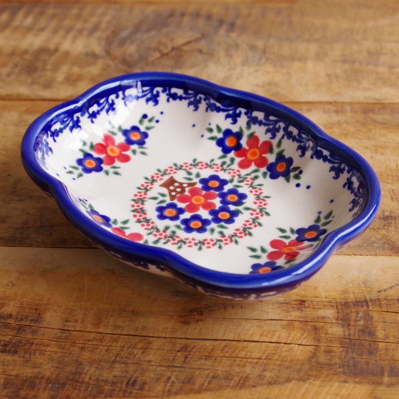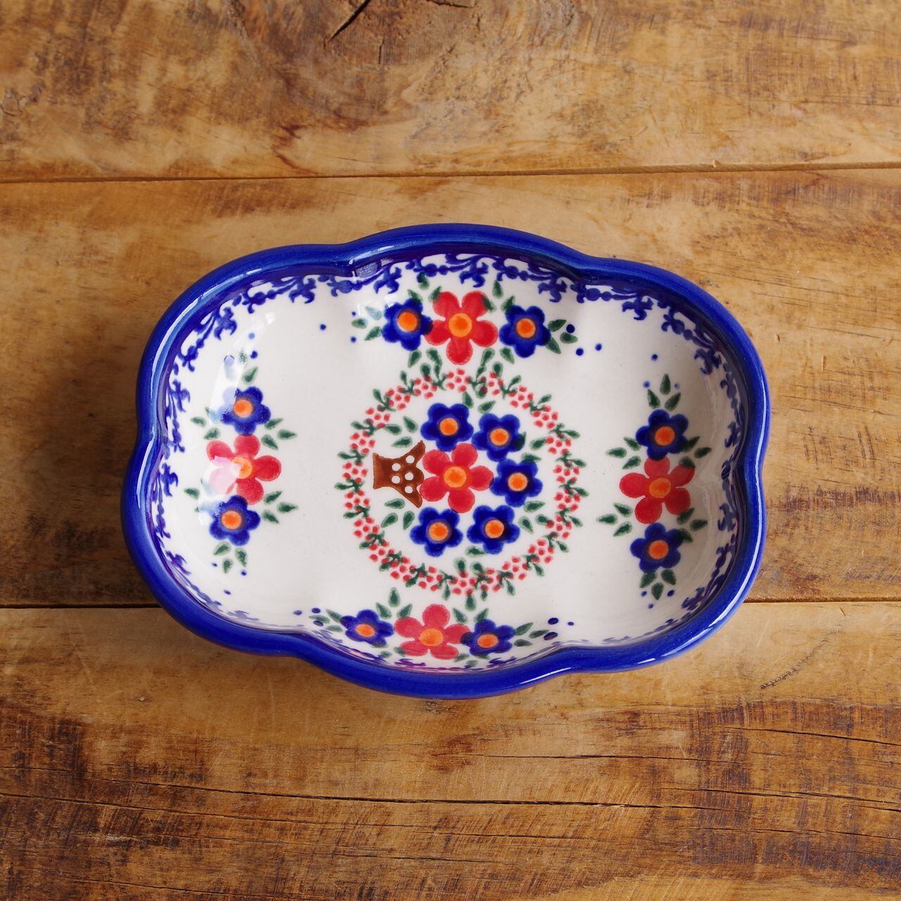 【新品】 ポーランド食器 ポーリッシュポタリー クラウドボウル ミニサイズ 12.5cm 赤 ネイビー 花柄 花籠 バスケット V085-A063 ボレスワヴィエツ陶器 Boleslawiec かわいい ソープディッシュ 小さめ お皿 変形皿