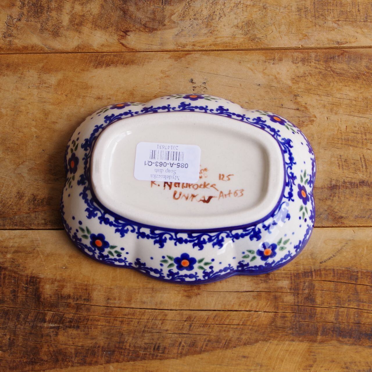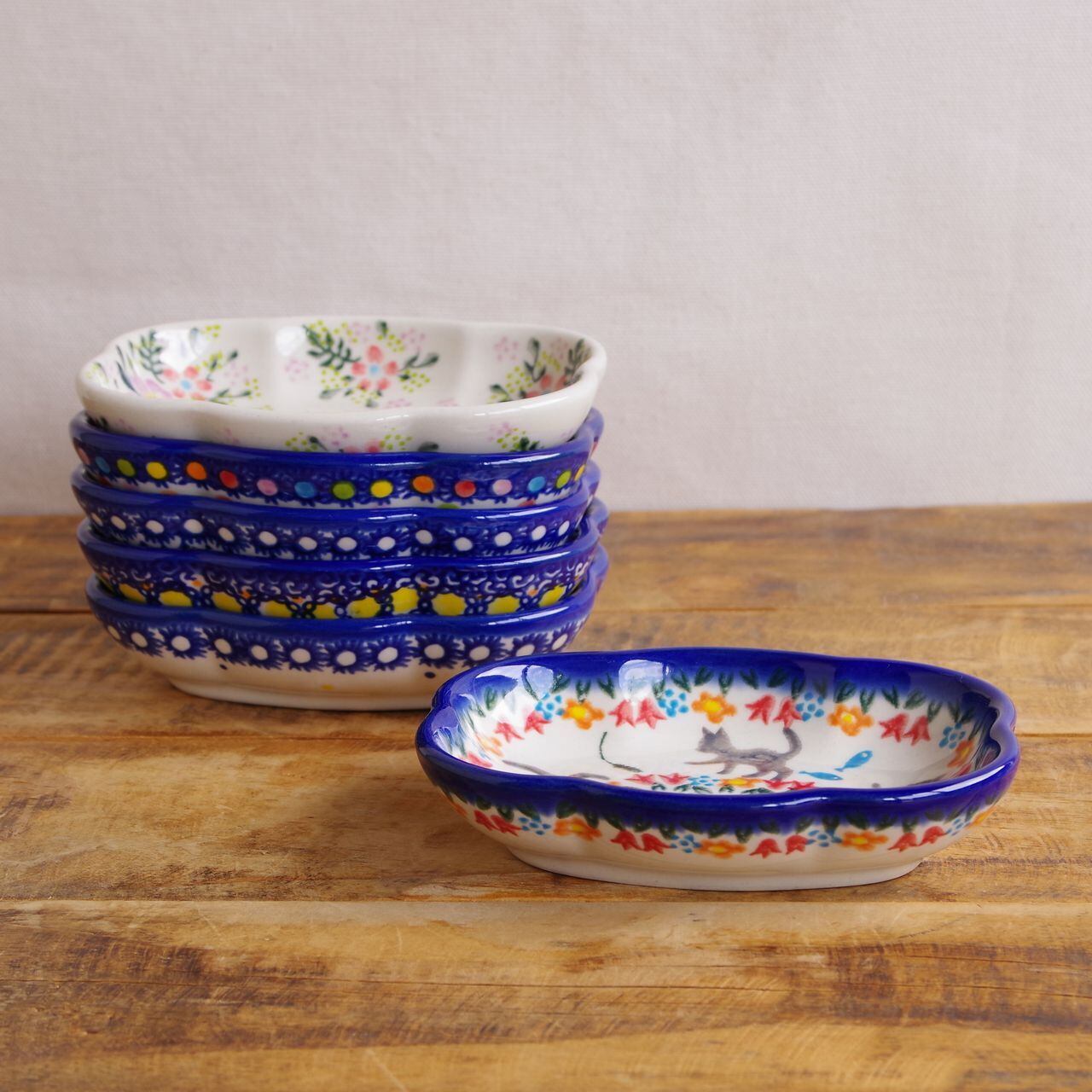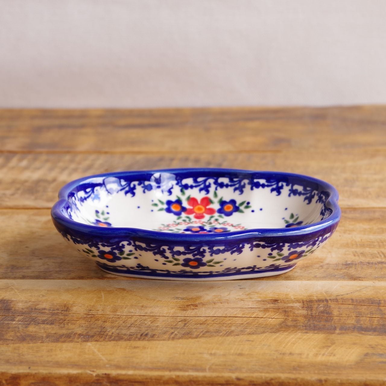 【新品】 ポーランド食器 ポーリッシュポタリー クラウドボウル ミニサイズ 12.5cm 赤 ネイビー 花柄 花籠 バスケット V085-A063 ボレスワヴィエツ陶器 Boleslawiec かわいい ソープディッシュ 小さめ お皿 変形皿
