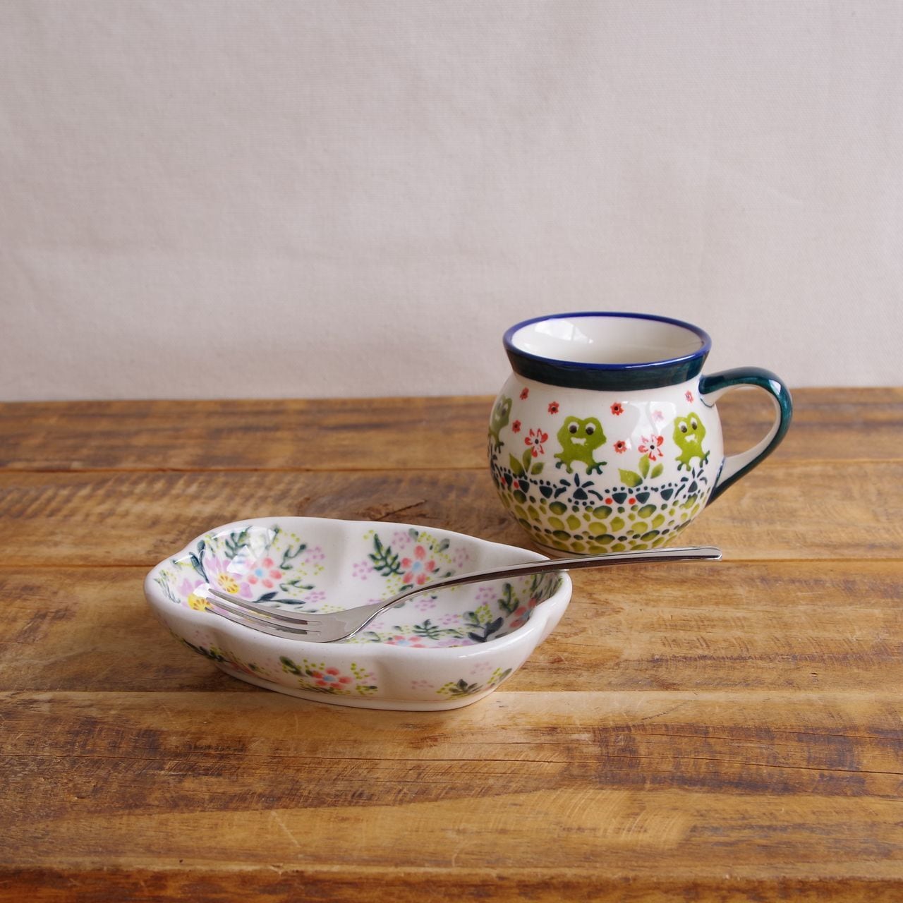 【新品】 ポーランド食器 ポーリッシュポタリー クラウドボウル ミニサイズ 12.5cm パープル ピンク 花柄 薄紫 V085-U489 ボレスワヴィエツ陶器 Boleslawiec かわいい ソープディッシュ 小さめ お皿 変形