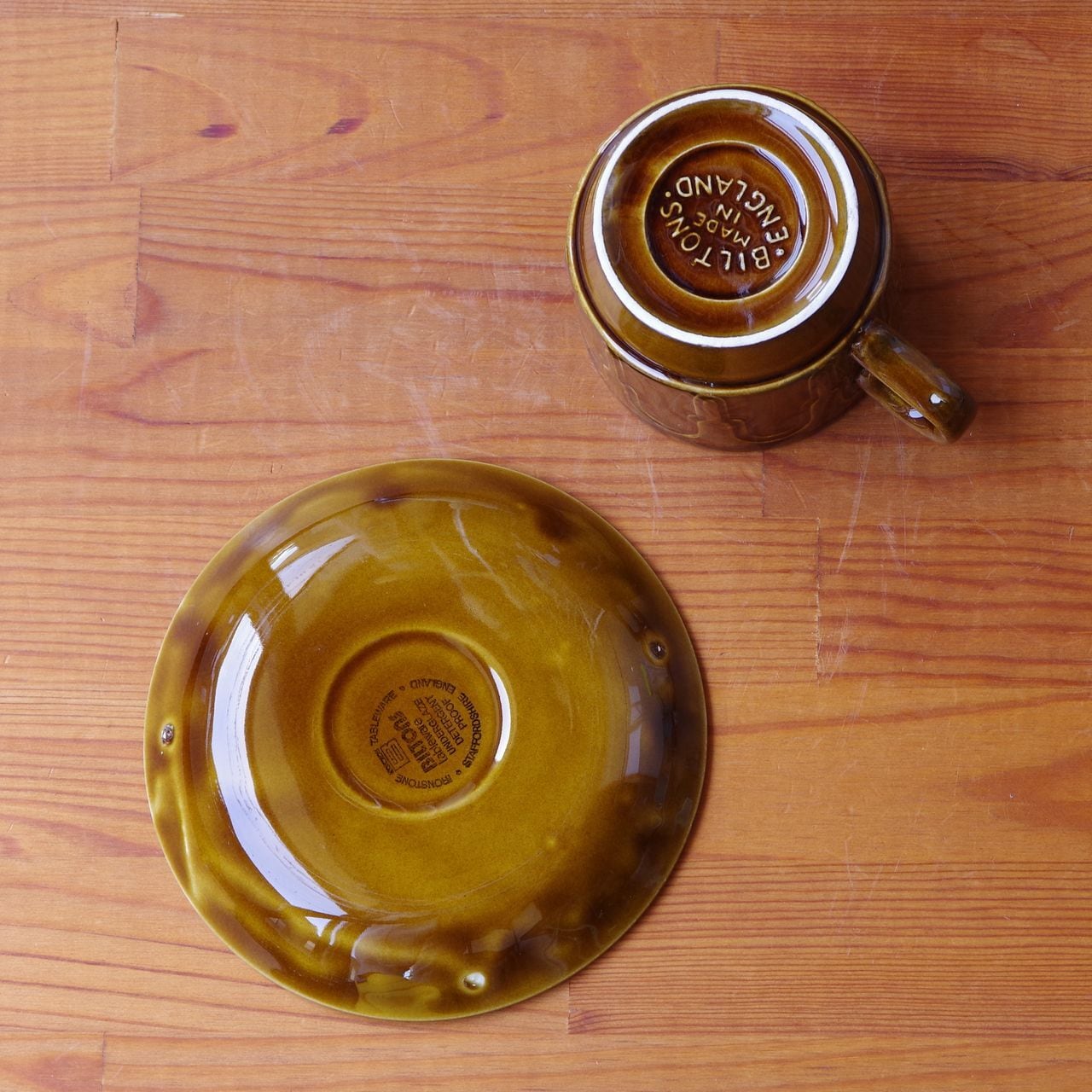 Biltons ビルトンズ ブラウン アラベスク レリーフ コーヒーカップ&ソーサー #260412-1 ヴィンテージ イギリス製 レトロモダン 食器 陶器 スタッキング ティーカップ CS
