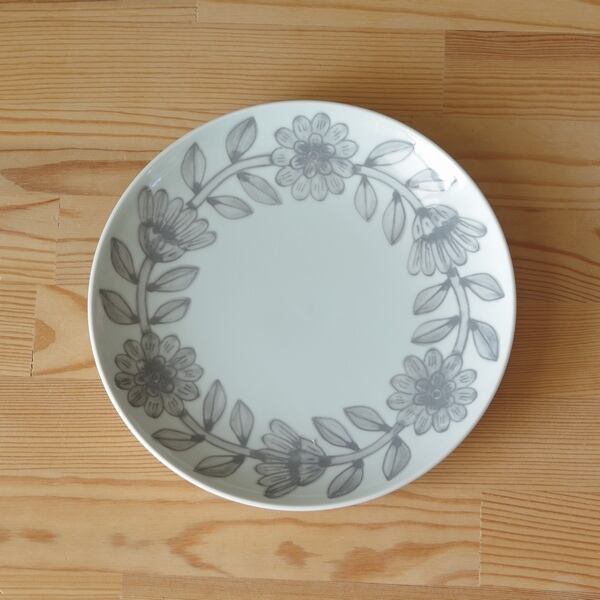 【再入荷】【新品】 波佐見焼 デイジー グレー デザートプレート ケーキ皿 中皿 18cm 取り皿 西山 北欧風 ボタニカル柄