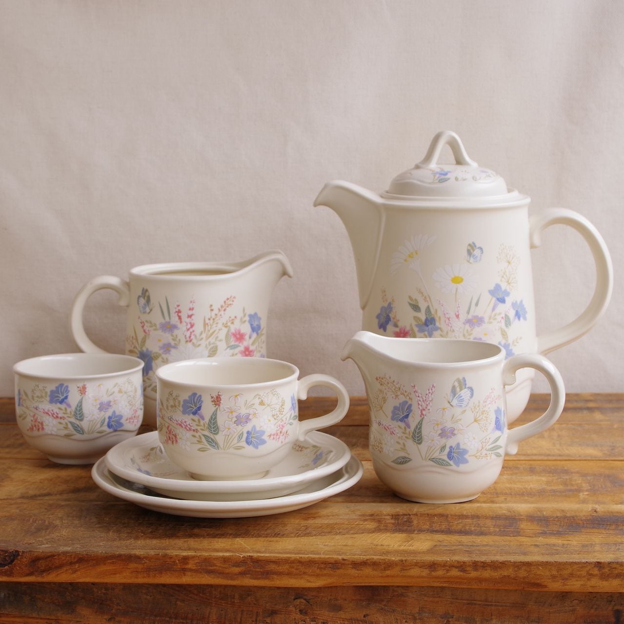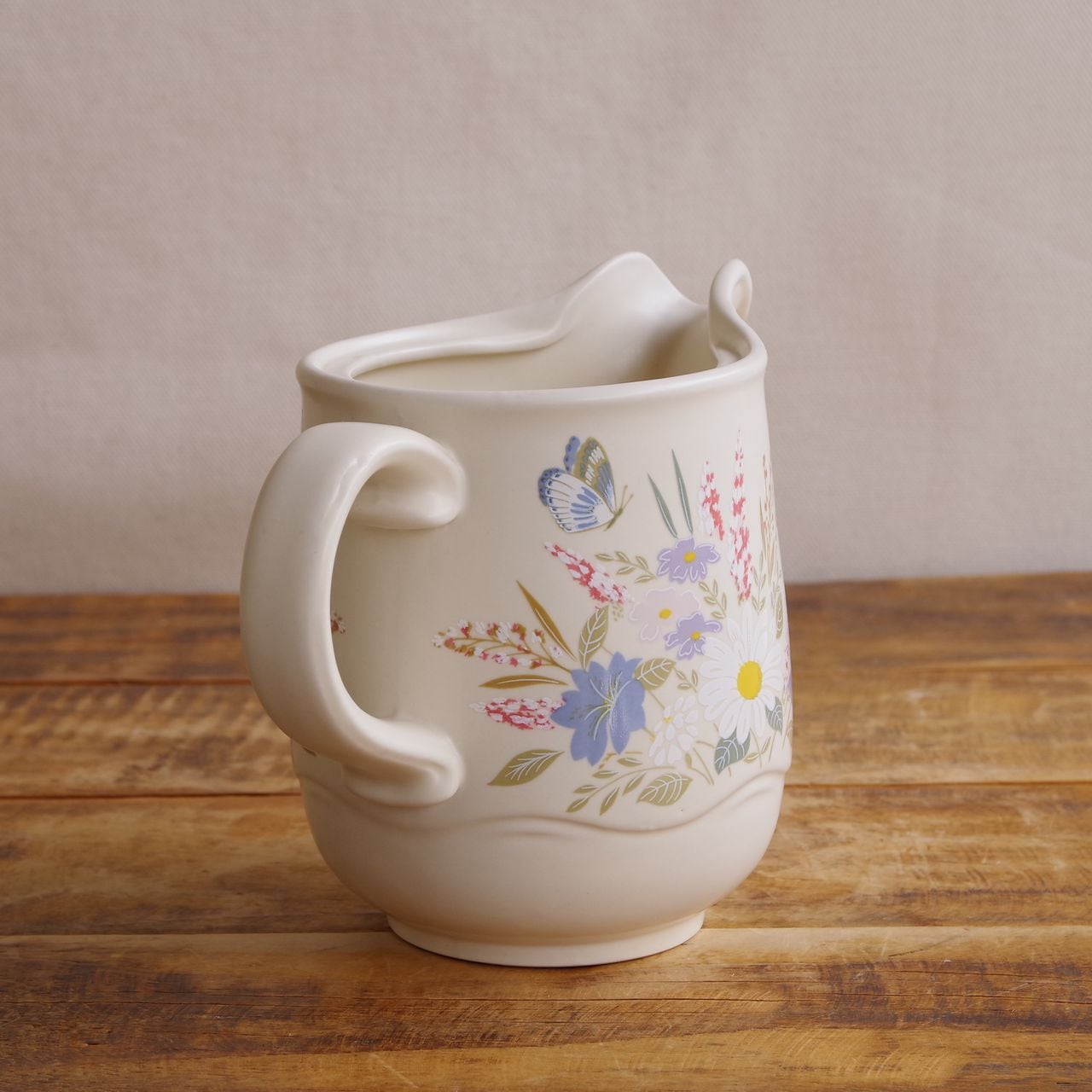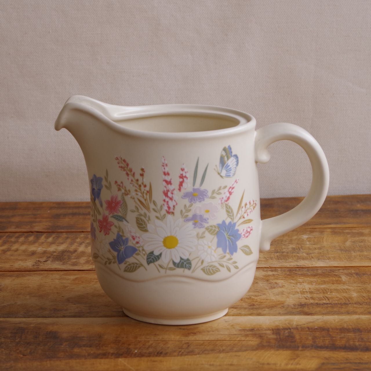 プール スプリングタイム ジャグ 水差し ピッチャー レトロ マット ベージュ 花柄 Poole Springtime #260419 イギリス ヴィンテージ 食器 陶器 ミッドセンチュリー 蝶 マーガレット ピンク 水色