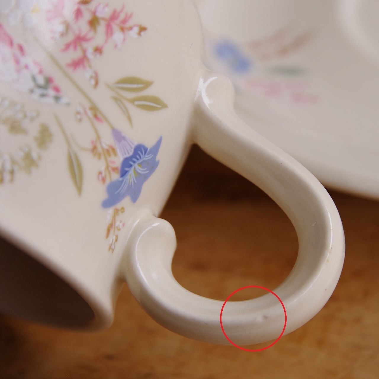カップ持ち手部分に、一か所ごく小さくぶつけた痕(薄いカケ)があります。