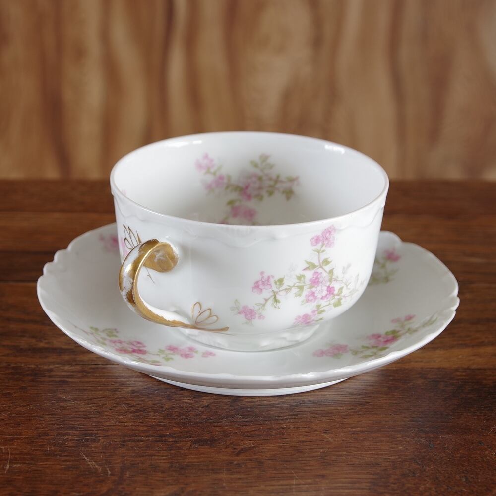 フランス製アンティーク食器 Limoges Haviland ピンク花柄 ティーカップ ソーサー #181025-3 ヴィンテージ 金彩 リモージュ アビランド エレガント