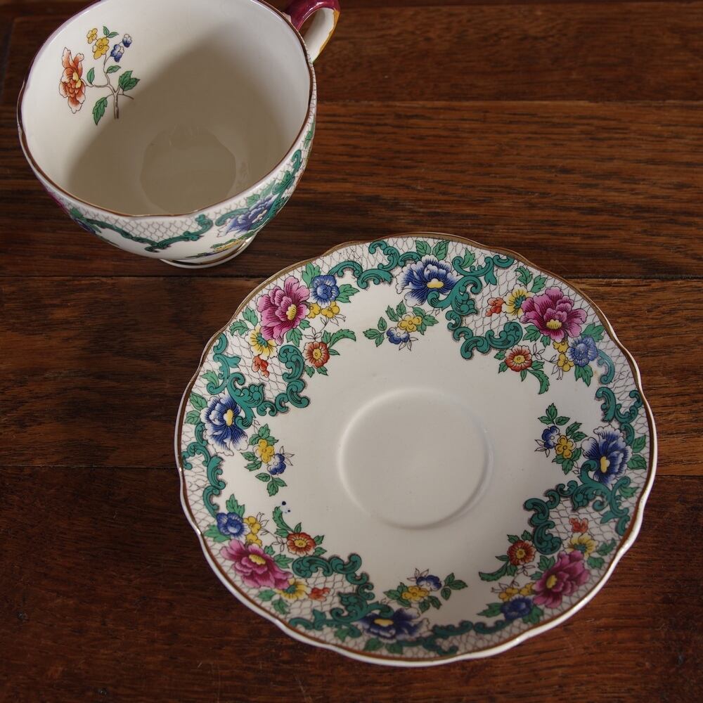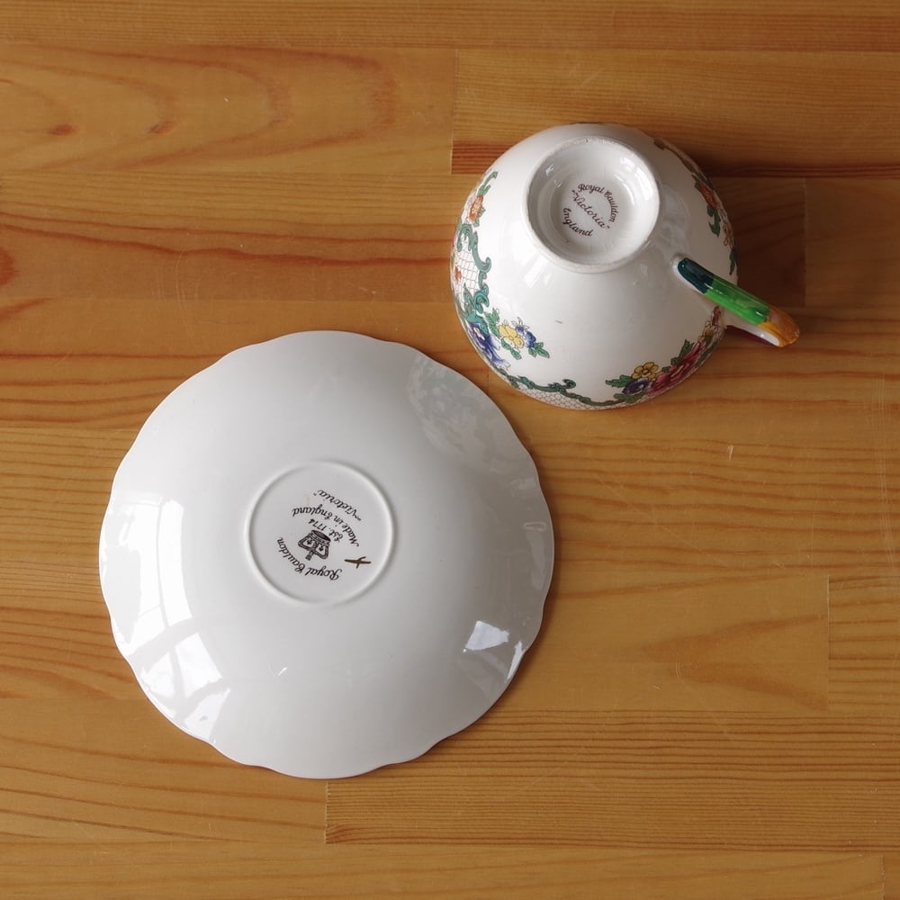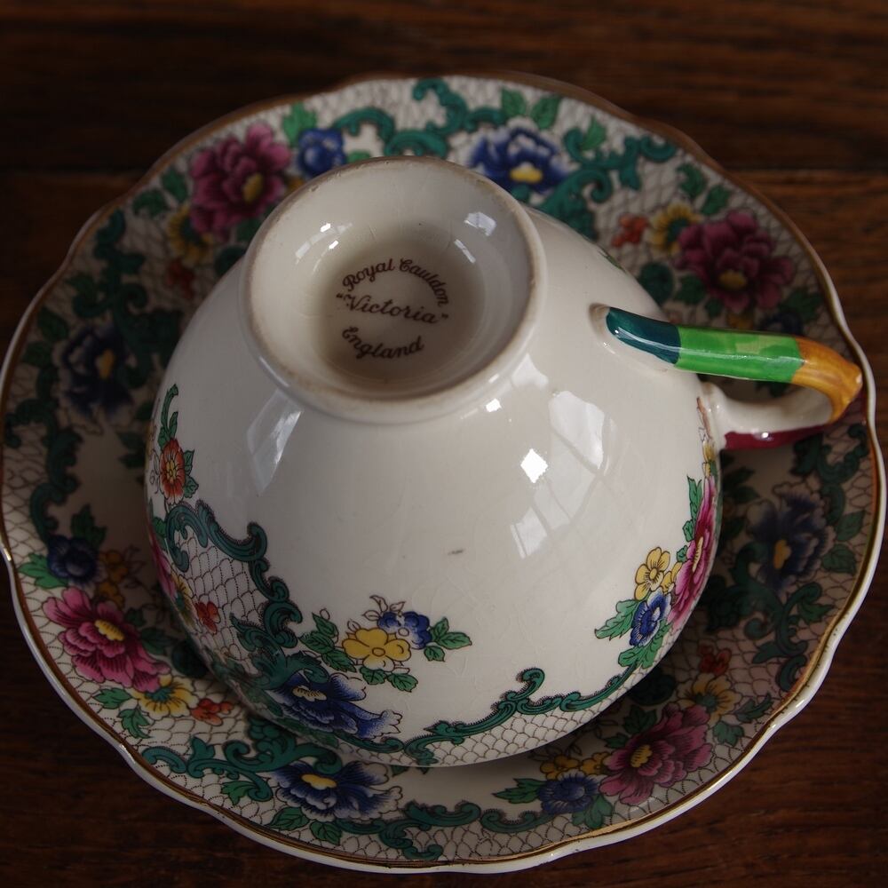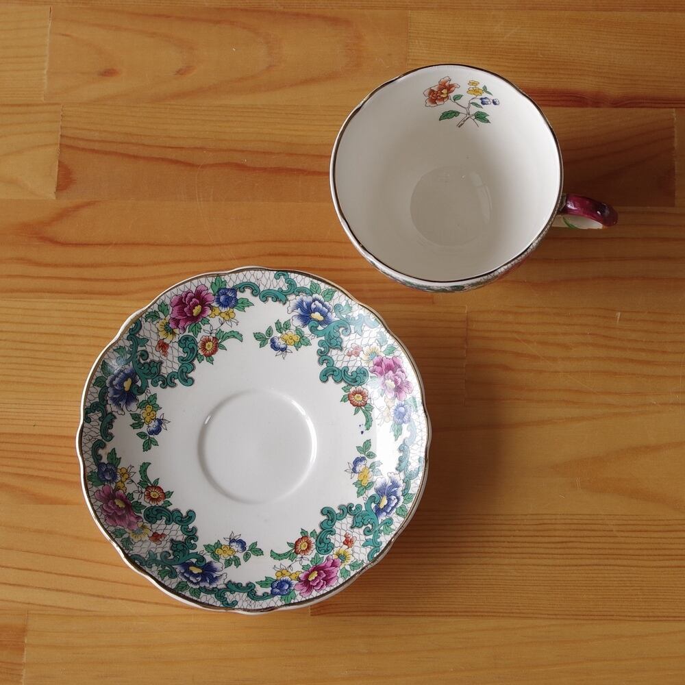 イギリス ヴィンテージ食器 Royal Claudon ヴィクトリア ティーカップ ソーサー #181030 ロイヤルクロドン アンティーク 花柄 オリエンタル