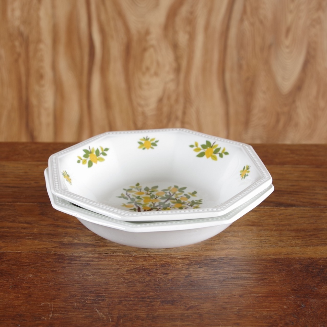 イギリス製ヴィンテージ食器 ジョンソンブラザーズ レモンツリー デザートボウル 小鉢 13cm #181101-1,2 Johnson Bros. Lemon Tree 八角形 フルーツ柄
