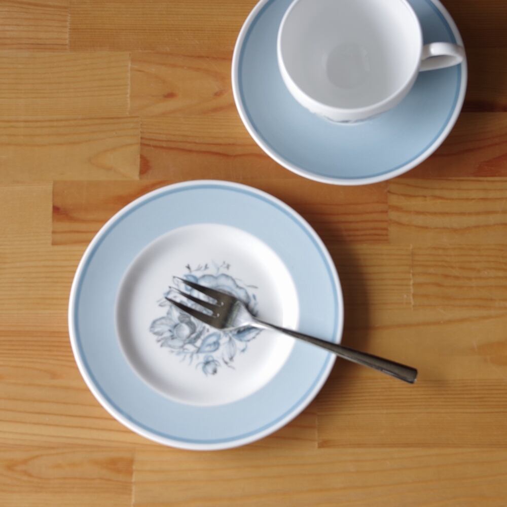 Susie Cooper Peony スージークーパー ピオニー デザートプレート ケーキ皿 17cm #181109-1~3 イギリス ヴィンテージ アンティーク レトロ ブルー 芍薬 花柄