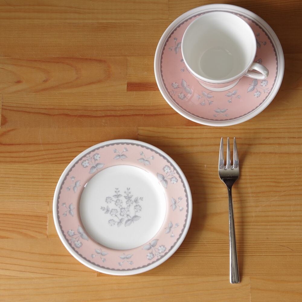 アンティーク ウェッジウッド ピンパーネル ピンク ケーキ皿 デザートプレート ヴィンテージ #181116-1 Pimpernel Wedgwood 食器 レトロ 花柄 BONE CHINA 中皿