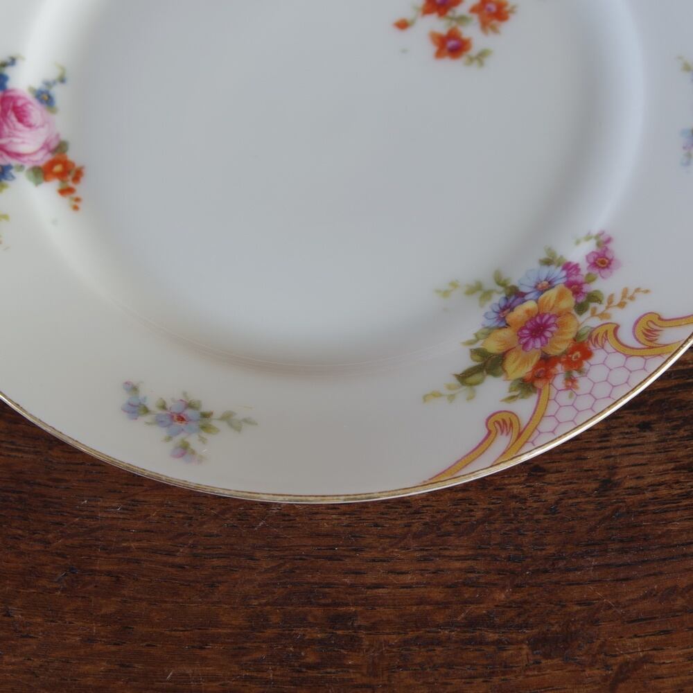 アンティーク食器 チェコスロバキア製 Epiag エピアグ ブライダルローズ ピンク薔薇花柄 ケーキ皿 17cm #181129-3 Bridal Rose ブーケ ヴィンテージ デザートプレート