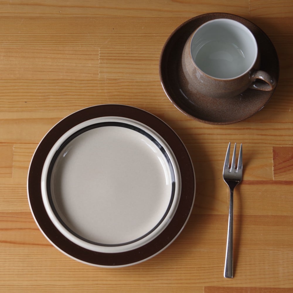 ベージュの地に、ダークブラウンのラインが引かれたシンプルで飽きのこないデザインです。