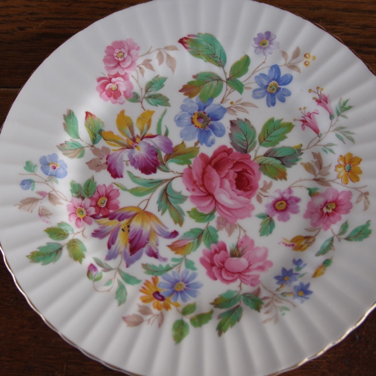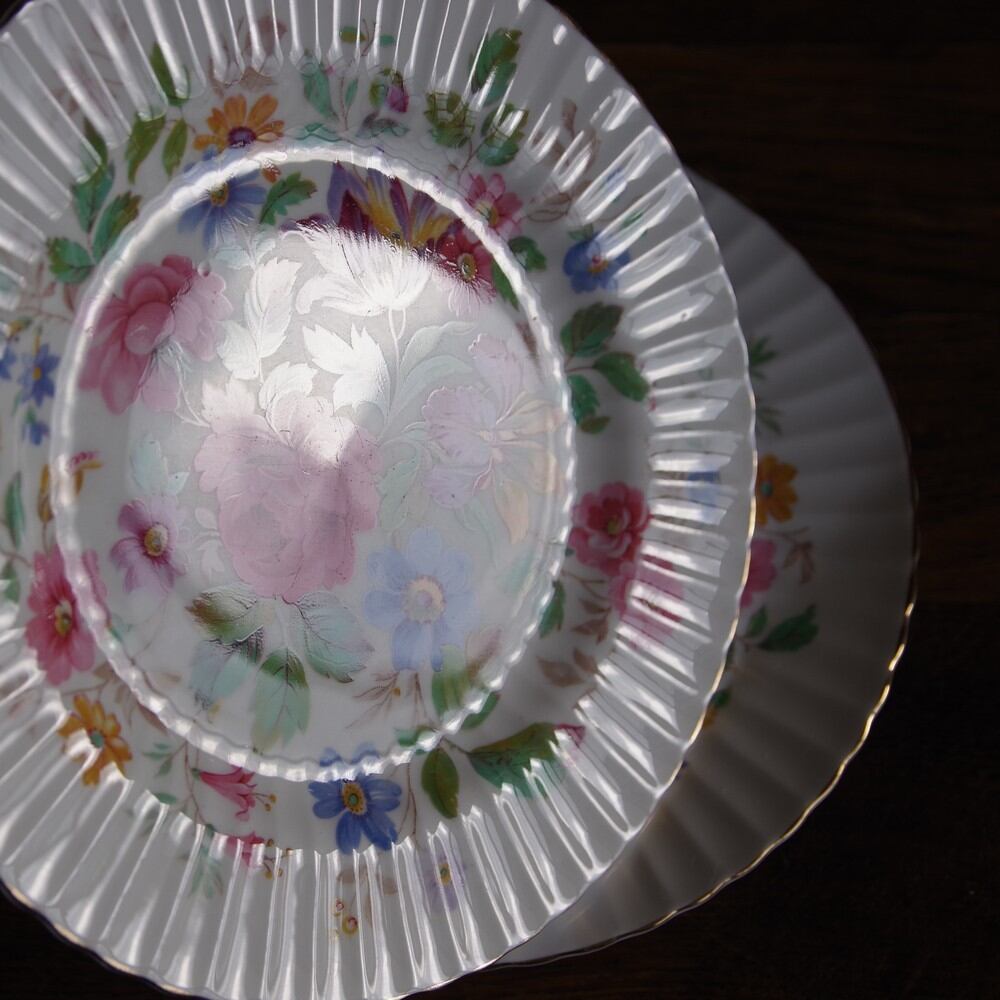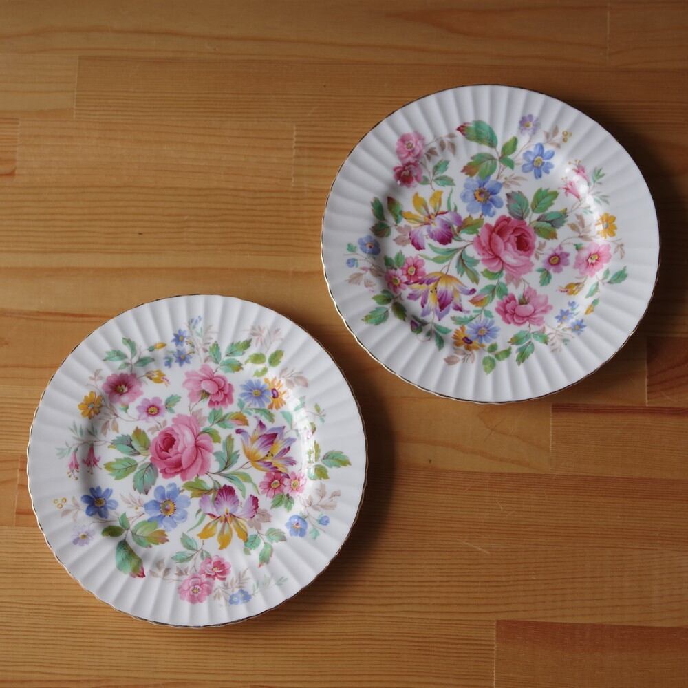 イギリス製アンティーク パラゴン Queen's Garden ブーケ 花柄 デザートプレート 20cm #181225-1,2 ヴィンテージ食器 Paragon クイーンズガーデン ケーキ皿