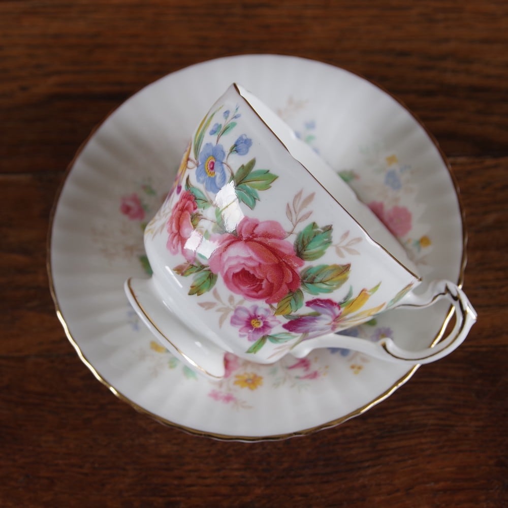 アンティーク食器 Paragon パラゴン Queen's Garden ブーケ 花柄 コーヒーカップ ソーサー #181225-1 ヴィンテージ イギリス製 クイーンズガーデン ローズ