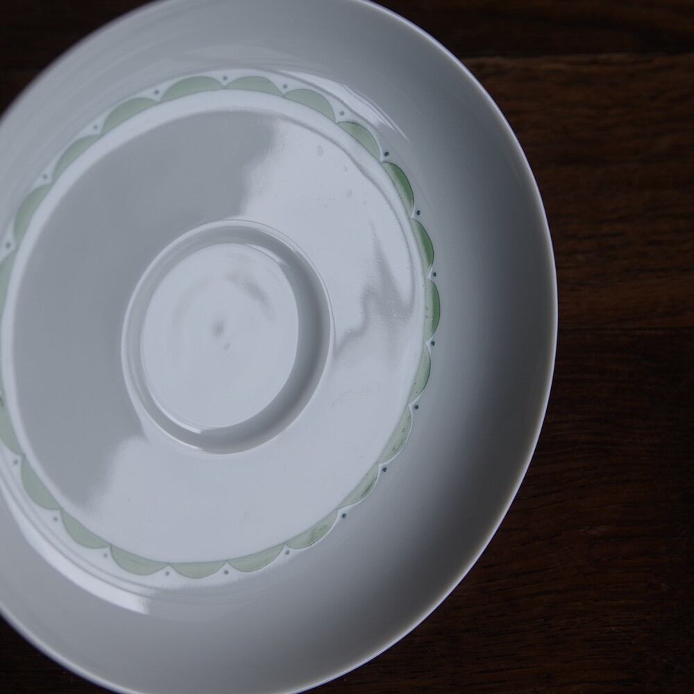 ソーサーにはきみどり色の模様がリング状に入っています。