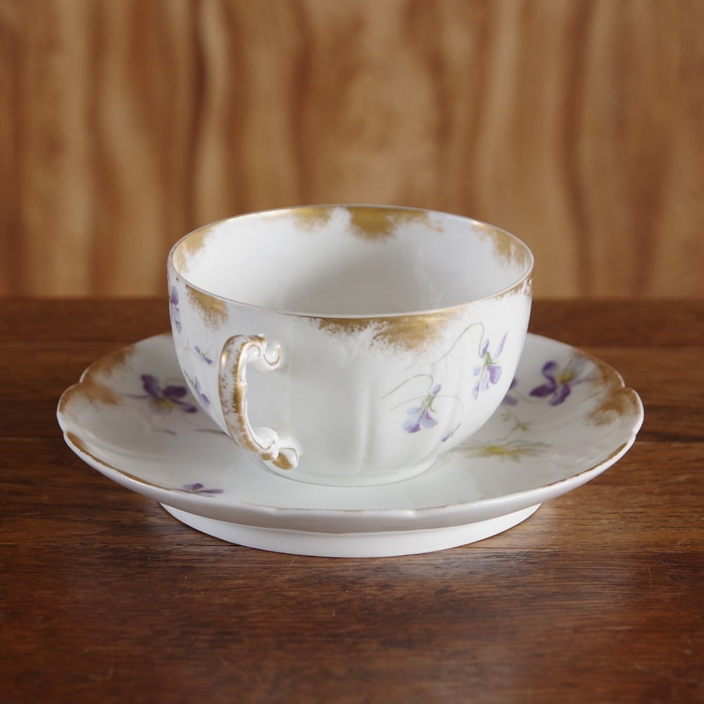 フランス製 アンティーク食器 リモージュ Limoges H&Co. Haviland すみれ 花柄 ティーカップ ソーサー #190111-3 陶磁器 ゴールド 金彩 ビンテージ デイジー アビランド