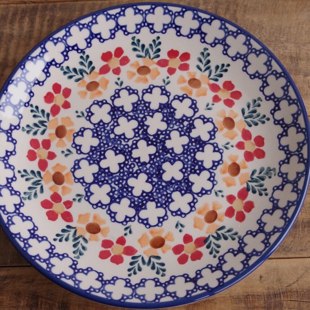 【再入荷】【新品】 ポーリッシュポタリー ボレスワヴィエツ陶器 ランチプレート 22cm 赤 オレンジ 花柄 T134-ALC17 Boleslawiec デザート 中皿 ケーキ皿 ポーランド食器