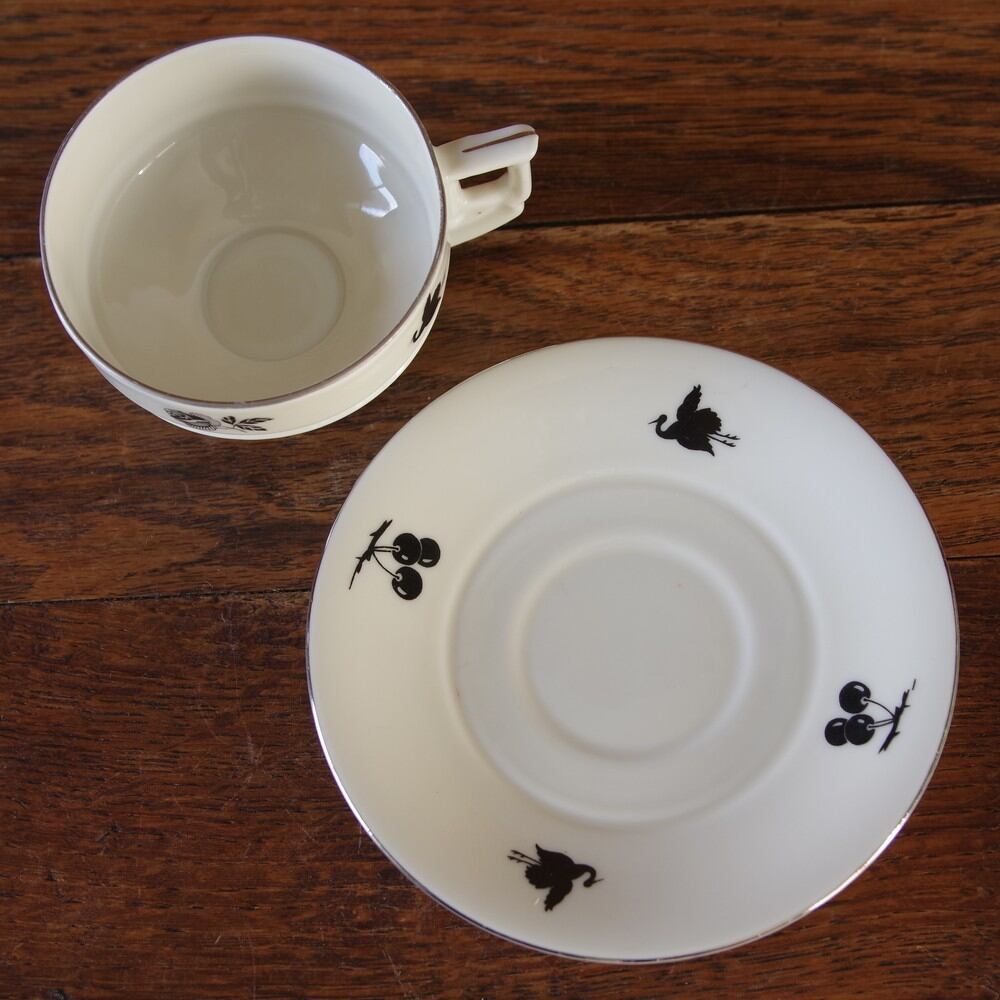 アンティーク食器 チェコスロバキア製 Epiag エピアグ アナベラ デミタスカップ ソーサー #190122-1 ミニサイズ シルエット 動物 花柄 ばら Annabella ヴィンテージ